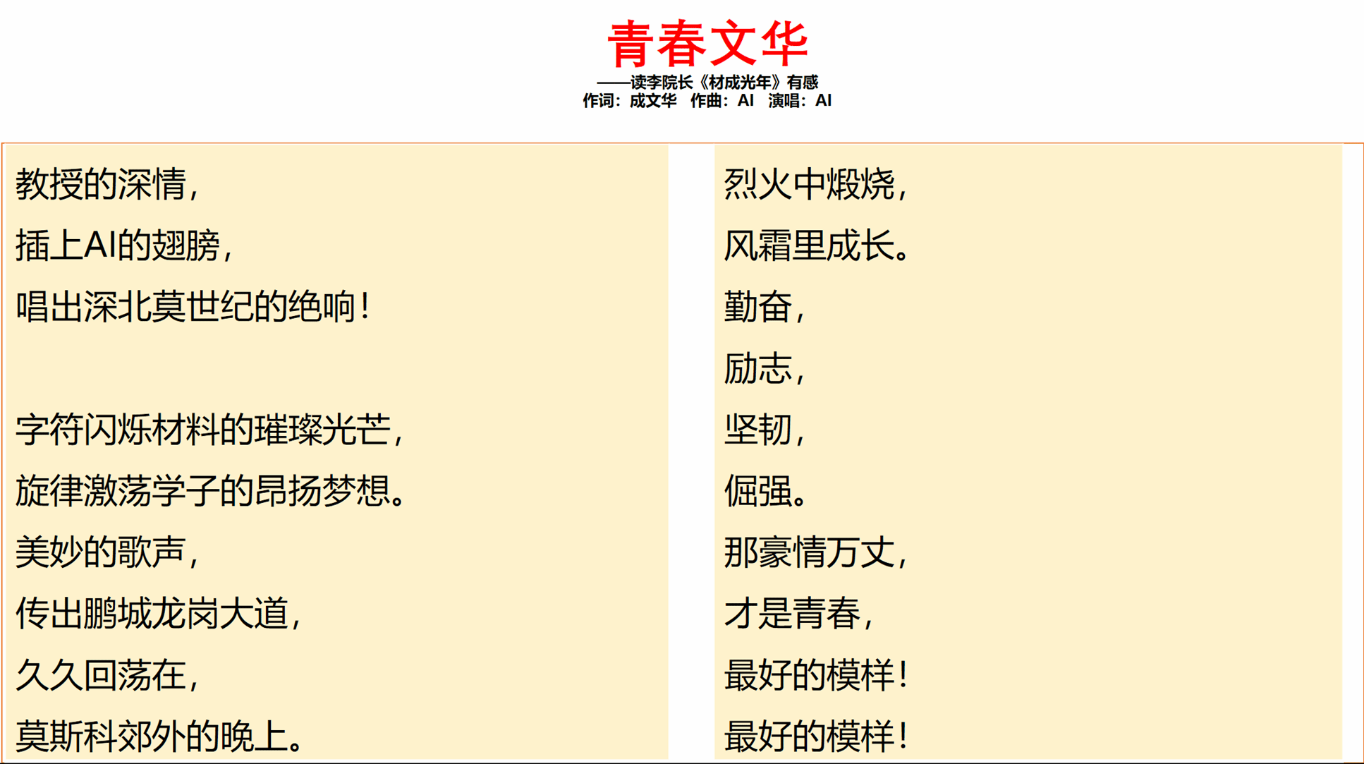 写给材料人自己的歌