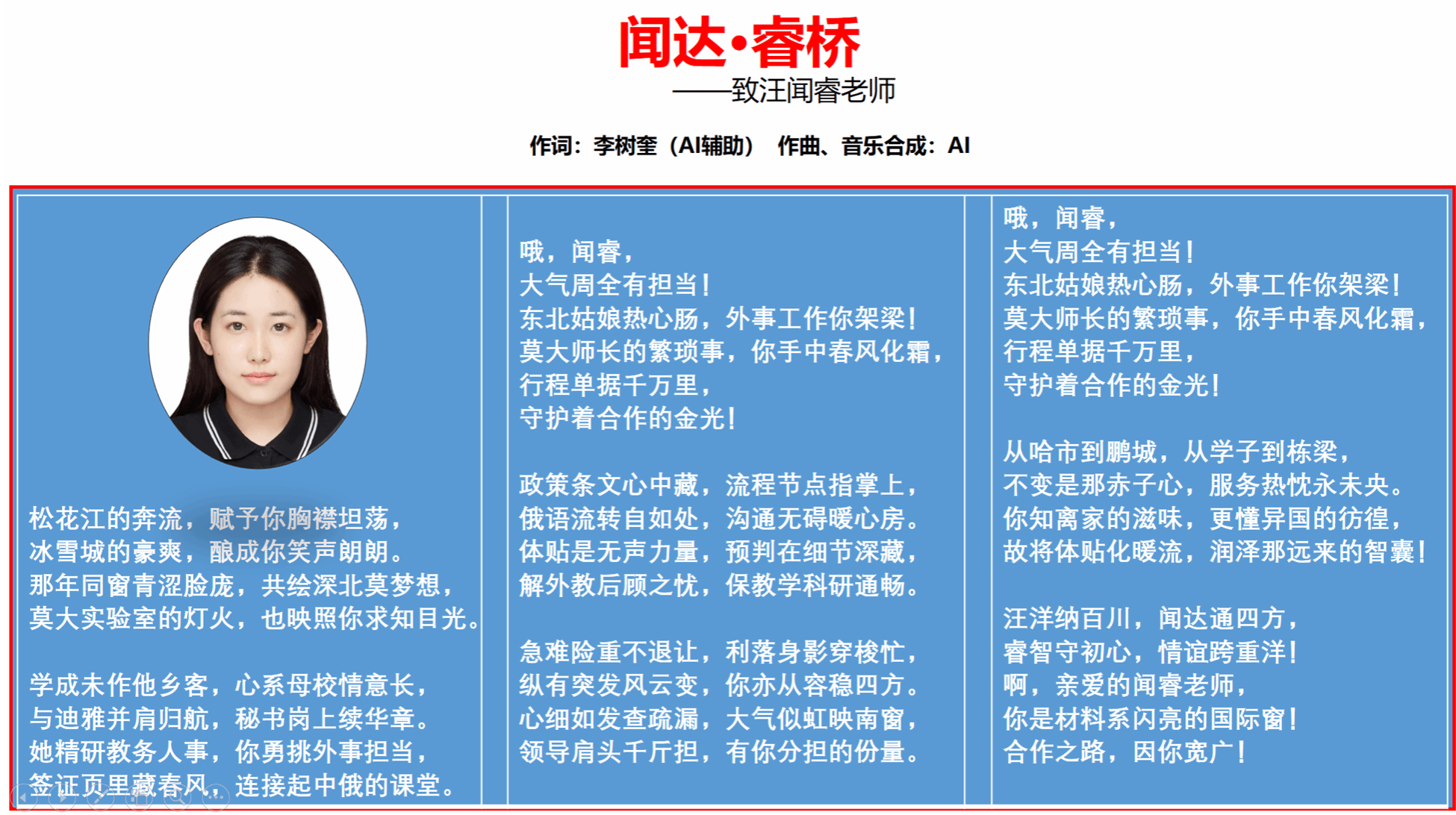 您当前所在的位置: 首页 >> 学科专业 >> 每人一歌 >> 正文