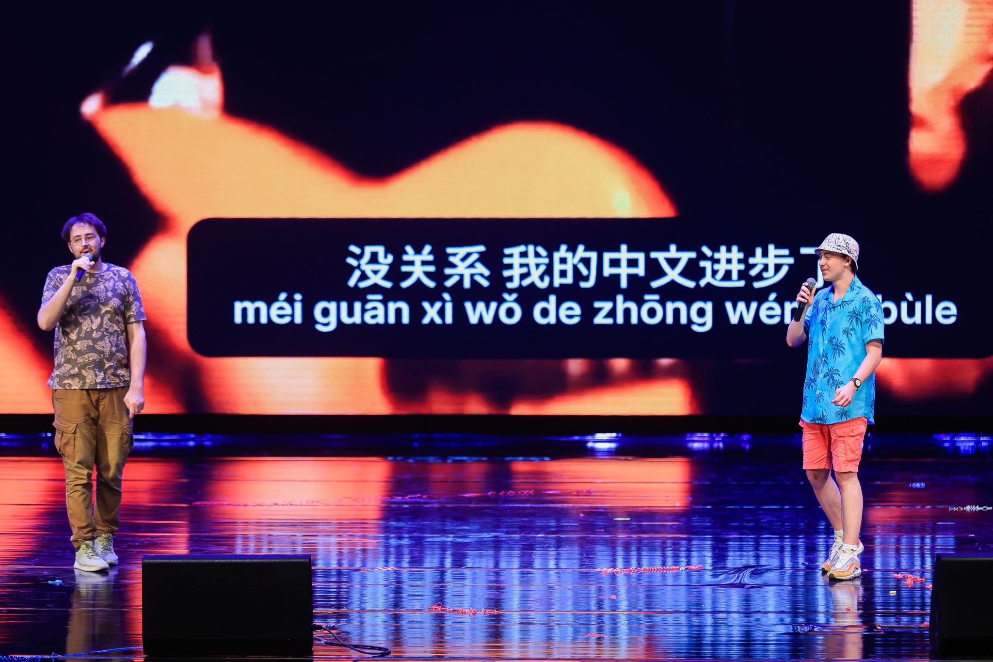 国际学生们还探索创新节目形式。有影视配音《城南旧事》融合合唱《送别》,再现百年前老北京风情;有《一字一世界》书法表演融合演讲,现场书写“和而不同”并向观众分享“和”字的深厚意蕴;还有《你是人间的四月天》朗诵与舞蹈相得益彰。本次晚会节目的表演者大部分为24级大一国际新生。经过近一年的学习,学生们的汉语水平进步很大。也有一些高年级国际学生已多次参加活动,他们的汉语水平与舞台经验日臻完善。
