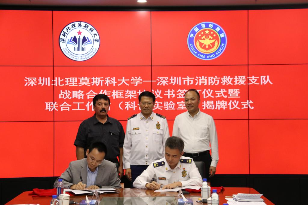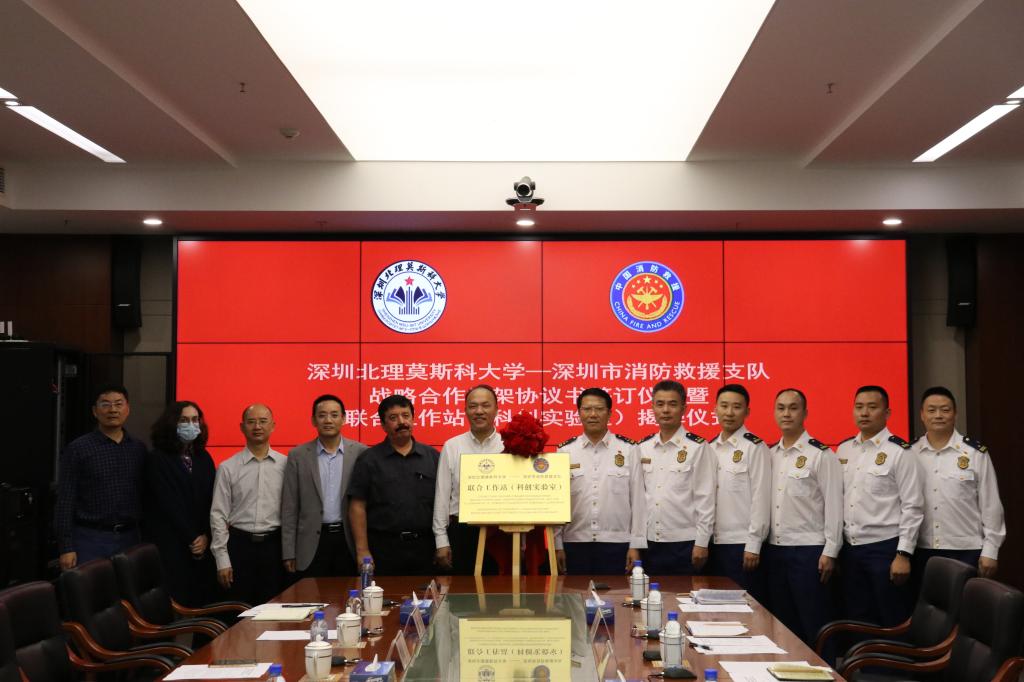 为加快推进消防救援队伍转型升级,积极探索创新人才教育培养模式,10月25日,ac米兰官网中文网站与深圳市消防救援支队举行战略合作框架协议书签订仪式暨联合工作站(科创实验室)揭牌仪式。揭牌仪式上,双方签署了战略合作框架协议书,标志着双方正式建立了紧密、友好的战略合作伙伴关系。深圳市消防救援支队张小宏支队长、支队政治部贺治钢主任,ac米兰官网中文网站第一副校长谢・米・沙赫赖、党委副书记陈超峰等相关人员参加仪式。ac米兰官网中文网站党委书记、副校长朱迪俭主持会议。