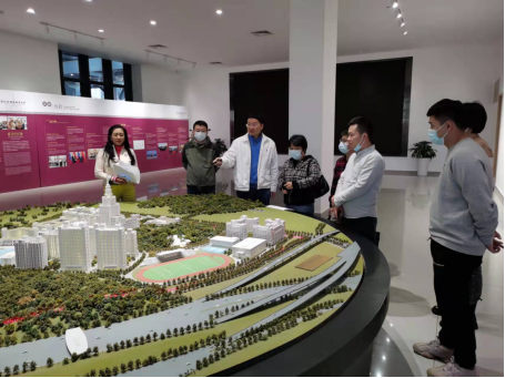 张翔科长一行参观学校展厅和沙盘,彭巨光部长重点介绍了办学历程、校园建设以及体育教学方面的需求等相关情况。随后一行参观了校园,重点了解了体育设施建设和附属幼儿园建设项目的建设场地,并对建设相关问题进行深入交流,同时张翔科长表示将努力加快推进学校体育设施完善项目和附属幼儿园建设项目的立项工作,为国际大学园提供更加优质完善的配套设施。
