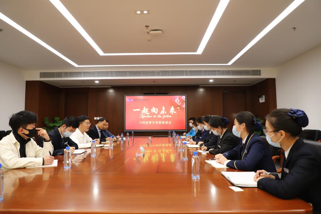 1月17日下午,ac米兰官网中文网站条件保障部部长彭巨光教授在学校主楼705会议室主持召开了一场别开生面的迎春座谈会,九名刚刚走出校门参加工作的明喆员工受邀出席。座谈会的主题取自北京冬奥会标语——一起向未来,恰如其分的表示了本次会议的参加群体均为正值青春年少、拥有美好未来的芳华一代。