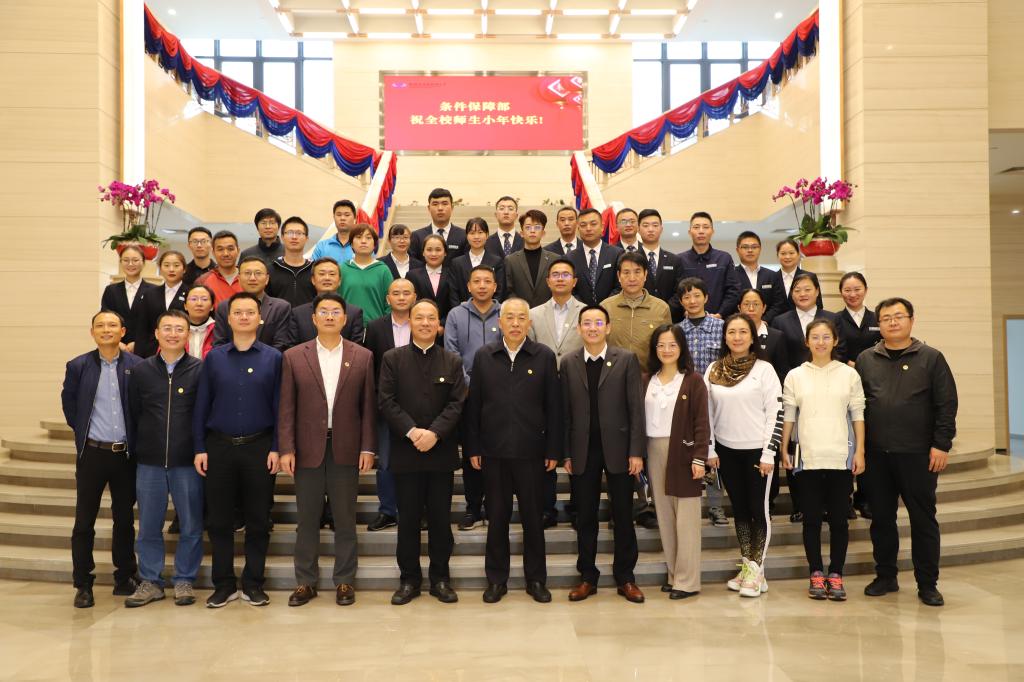 最后,李和章校长、朱迪俭书记、陈超峰副书记与条件保障部全体成员及各服务单位代表合影留念,并祝全体工作人员小年快乐!