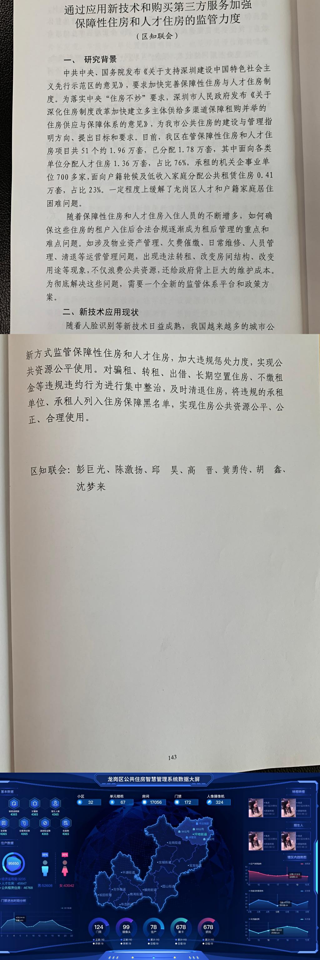 2月13日下午,在菠萝山工业区举行了龙岗区无党派人士调研报告《通过应用新技术和购买第三方服务加强保障性住房和人才住房的监管力度》总结和后评价座谈会暨新课题讨论会。龙岗区委统战部副部长张戈先生到会祝贺课题组取得圆满成果。课题组负责人、龙岗区党外知识分子联谊会(以下简称“区知联会”)副会长、我校条件保障部部长彭巨光教授主持了研讨会。区知联会副会长、龙岗区住房保障管理中心主任陈激扬先生代表课题组就课题的研究背景、新技术应用现状、目前存在主要问题、相关对策与建议等几个方面汇报了课题的开展与完成情况,以及取得的研究成果,目前已经产生的社会效益和应用效果。