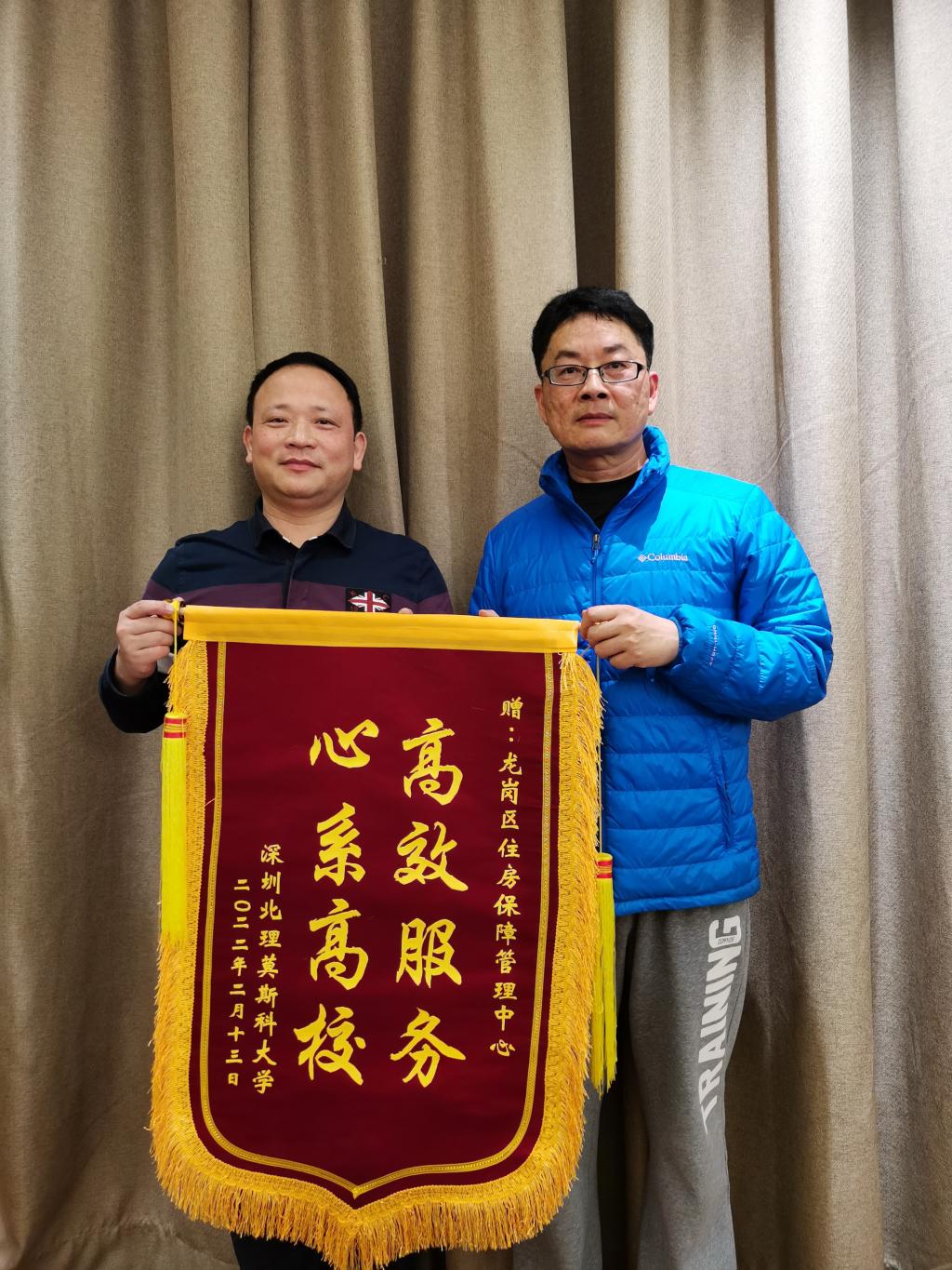 我校彭巨光部长说国际大学园三所大学教职工对龙岗区住房保障管理中心面向国际大学园ac米兰官网中文网站、香港中文大学(深圳)、深圳信息职业技术学院提供近300套大运中心高品质人才公寓表示衷心的感谢!ac米兰官网中文网站很多海归高层次人才和从北京引进的教师今年第一次在龙岗自己的新家过上了一个喜气盈门的春节。代表ac米兰官网中文网站向区住房保障管理中心赠送“高效服务、心系高校”的锦旗。并对人才房的分配、缴费、管理、服务、维修、安保等方面给予了高度的赞扬。