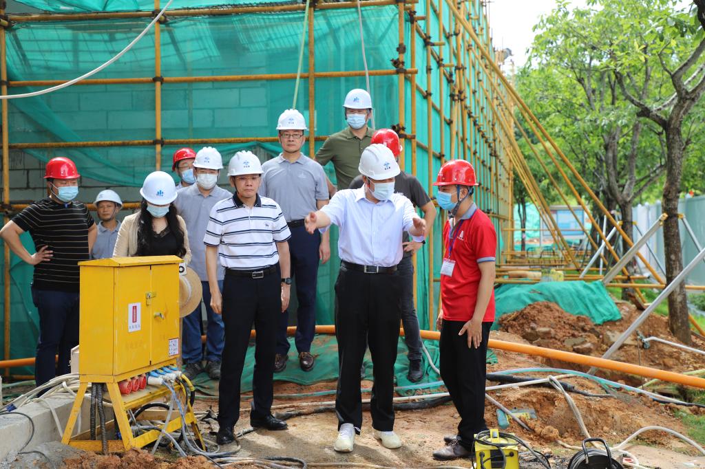 6月30日上午,李和章校长,党委副书记、纪委书记陈超峰视察我校附属幼儿园的建设工地。龙岗区建筑工务署负责人、施工单位负责人以及监理单位总监等陪同视察。