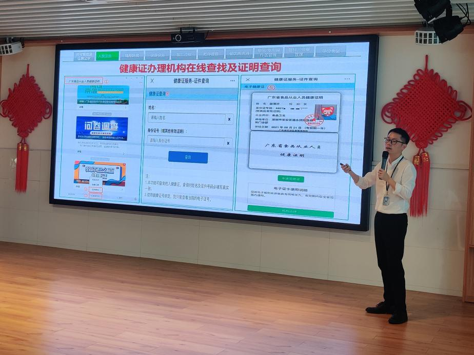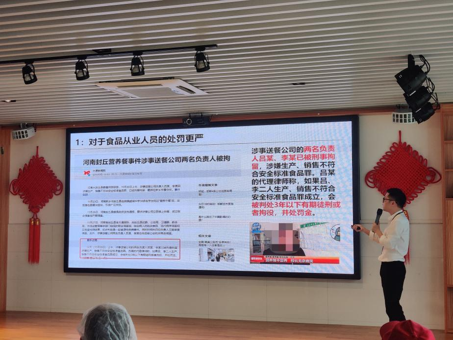 培训会上,主讲人根据《中华人民共和国食品安全法》、《GB 31654-2021 食品安全国家标准 餐饮服务通用卫生规范》、《餐饮服务食品安全操作规范》、《深圳市餐饮服务食品安全日常监督现场检查记录表》等食品安全法律、法规、规章、行政规范性文件及标准相关要求,结合学校食堂实际运营情况,通过直观生动的方式从人员卫生、场所环境、设施设备、加工过程、贮存管理等方面细致讲述了食品安全的标准及规范操作相关要求,让全体从业人员不仅全面地学习食品安全操作要点,同时深刻认识到食品安全的重要性、必要性。