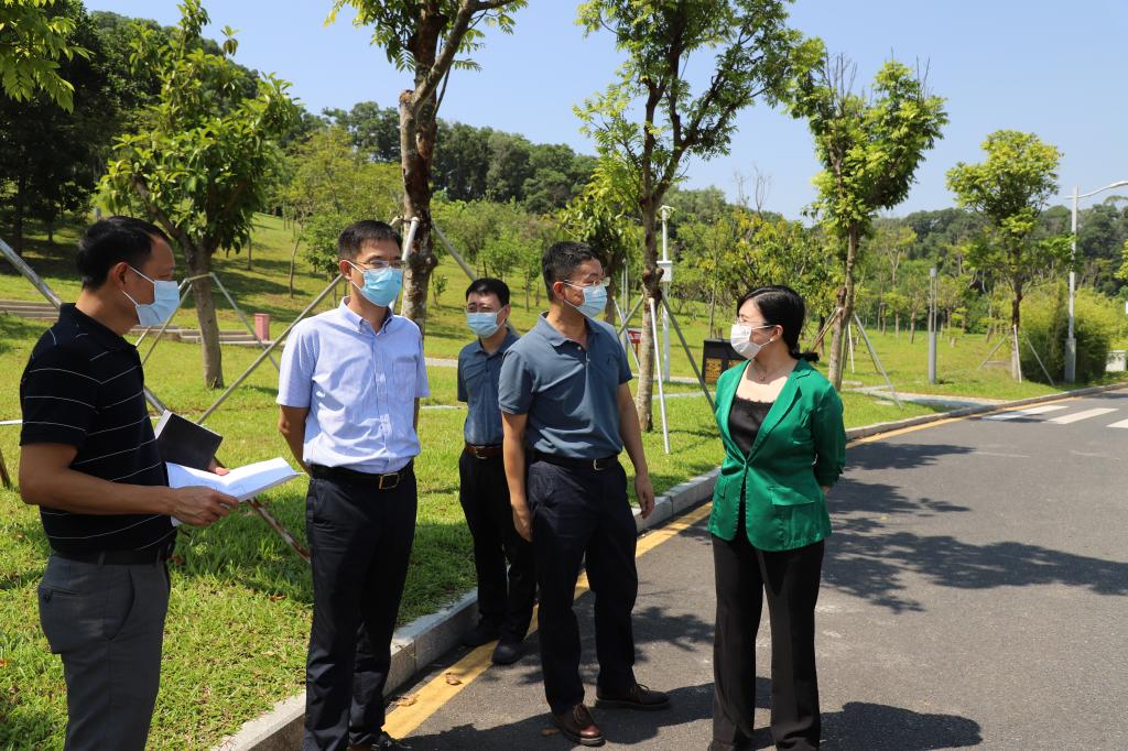9月6日上午,深圳市龙岗区城管局罗雅局长率队来校就服务驻区高校进行调研。条件保障部彭巨光部长陪同来访一行重点考察了食堂厨余垃圾清运处理、校园苗木管养及共建植物园等。