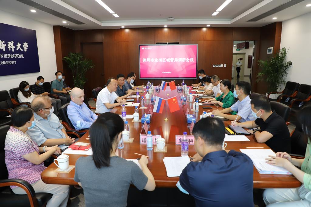 龙岗区城管局谢达副局长、局办公室、规划发展科、园林绿化中心等科室负责人和专家和学校生物系基塔绍夫主任、冀四梅第一副主任、条件保障部刘永明副部长、胡旦副部长及相关人员全程参加调研会议。