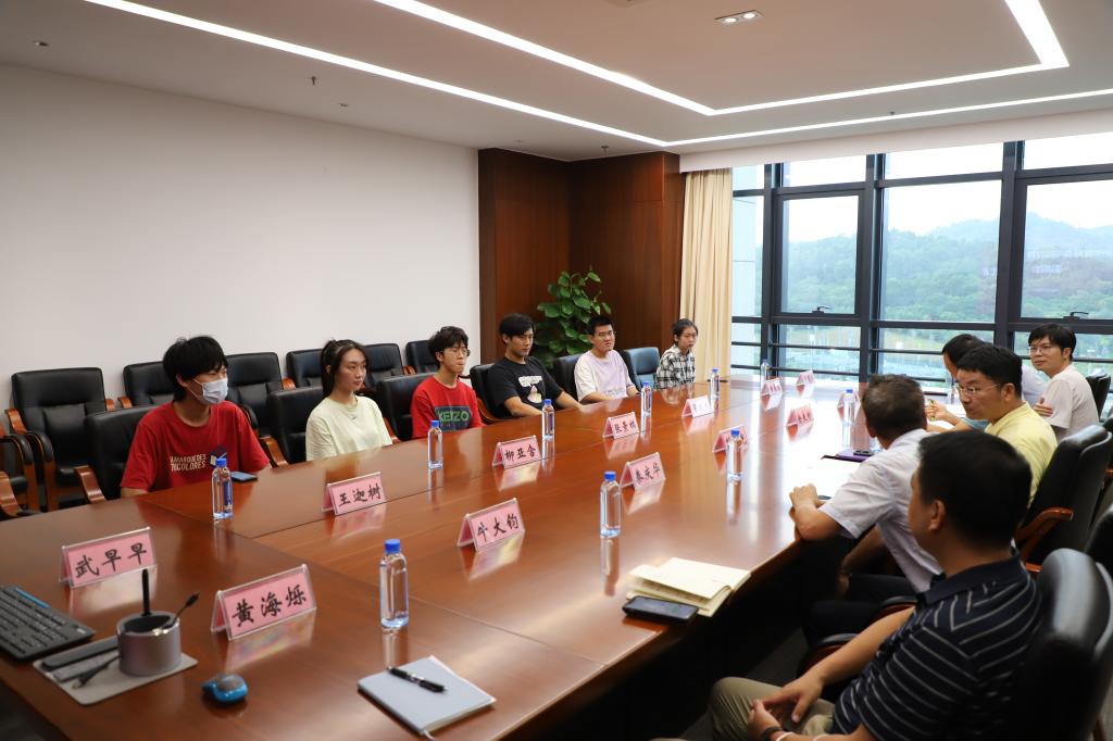条件保障部部长彭巨光教授携条件保障部主管余良彬、牛大钧、黄海烁、莫然杰老师,并特邀全球前2%的顶尖科学家、学校材料系秦庆华教授,留学莫斯科大学生物系本硕博连读的丁钒博士,一同会见了2022级新生代表张景棋(国际经济与贸易,四川)、翟珑杰(数学与应用数学,北京)、柳亚含(生物科学,江西)、黄良煜(国际经济法研究生,河南)、王迦树(数学与应用数学,山东)、吴茉冰(国际经济与贸易,湖南)、武早早(材料科学与工程,河北)等同学们进行了亲切的交谈。