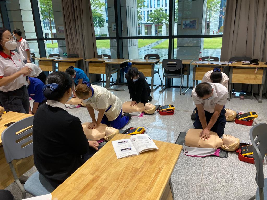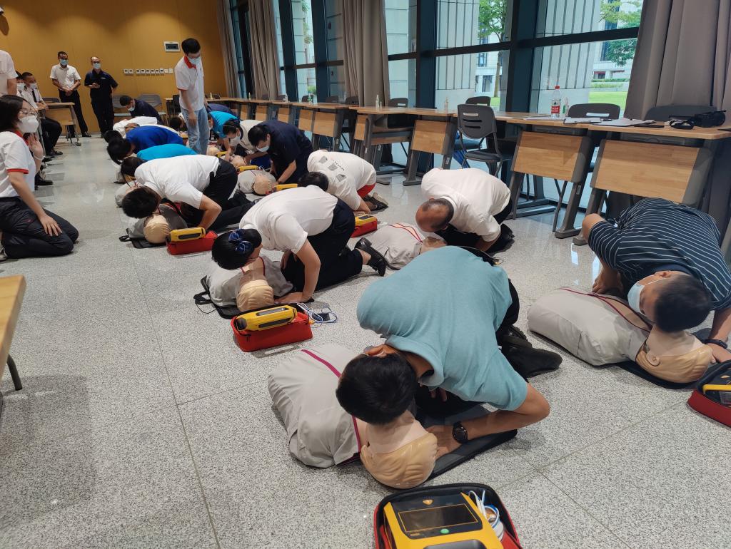 9月30日下午,在多媒体教室开展了心肺复苏技术、AED使用技术的培训课程。通过现场理论讲授和实操演练的方式,从如何识别判断心脏骤停、AED使用原理、注意事项等方面进行了详细讲解,并利用人体模型进行了现场心肺复苏及自动电除颤操作演示。参培人员通过认真学习观摩、亲手操作,切实加深了印象,掌握了解了一些急救基础知识,以及心肺复苏和AED的操作流程。