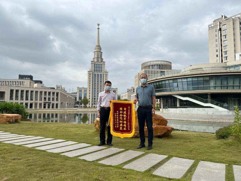 刘永明副部长和仉钊主管分别向施工单位赠送锦旗。