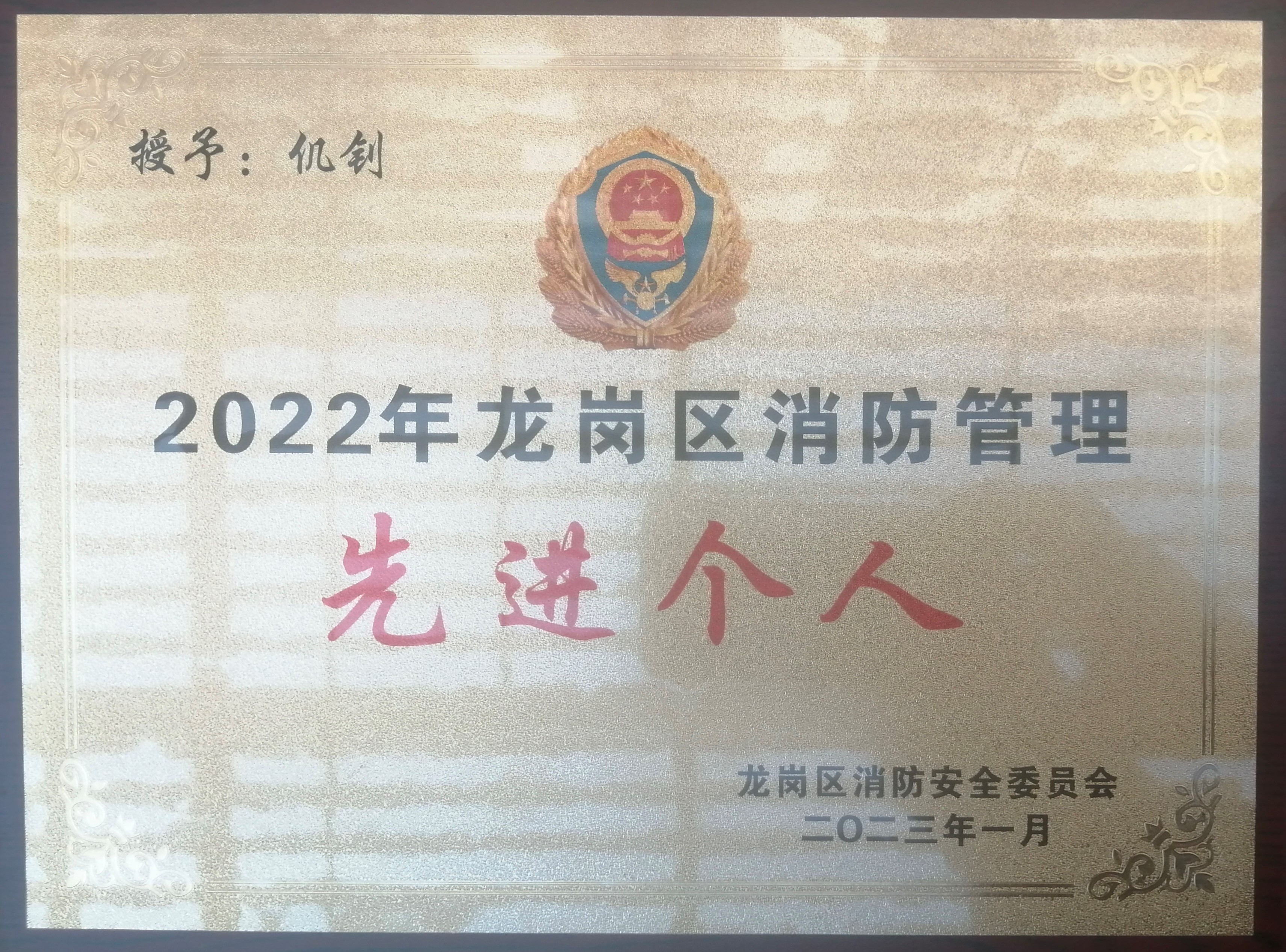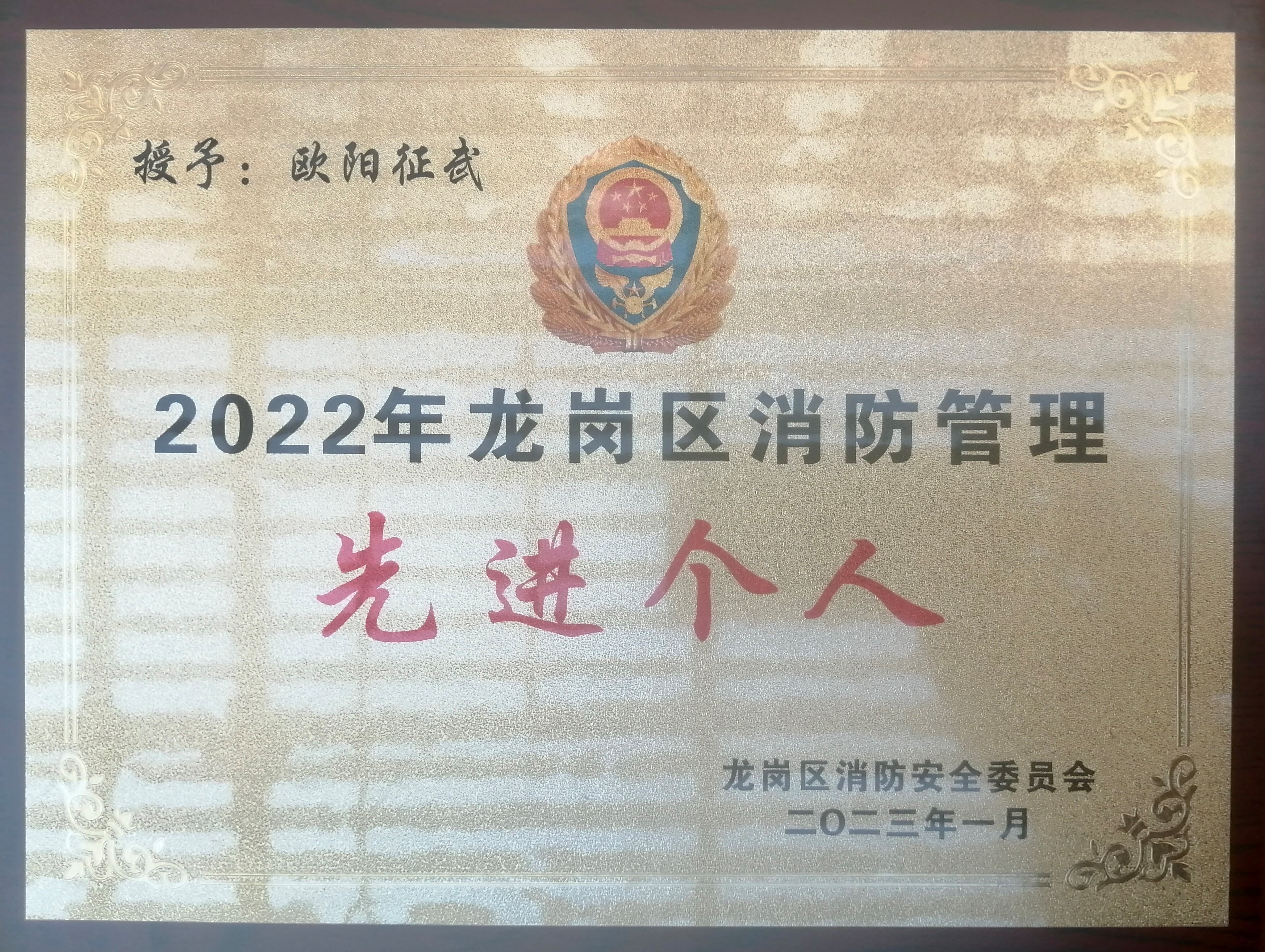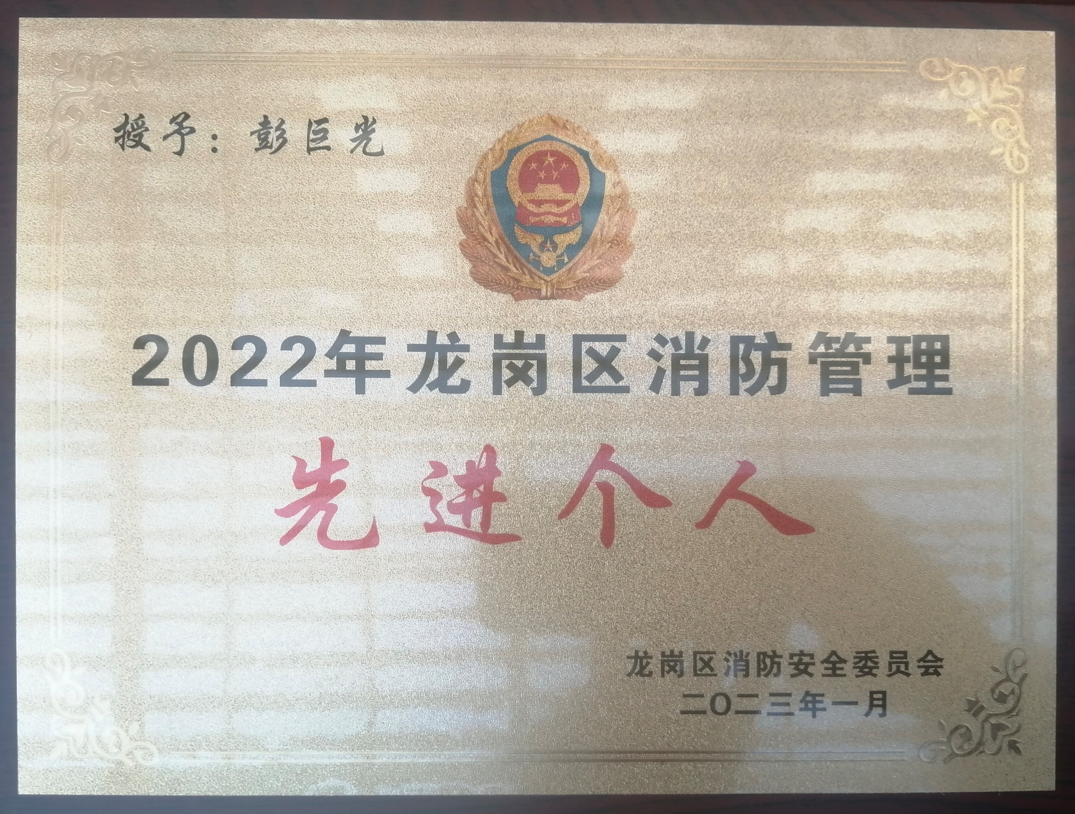 六、彭巨光、欧阳征武、仉钊三位同志评为“2022年龙岗区消防管理先进个人”