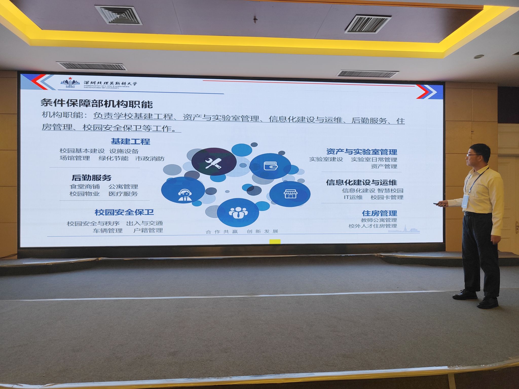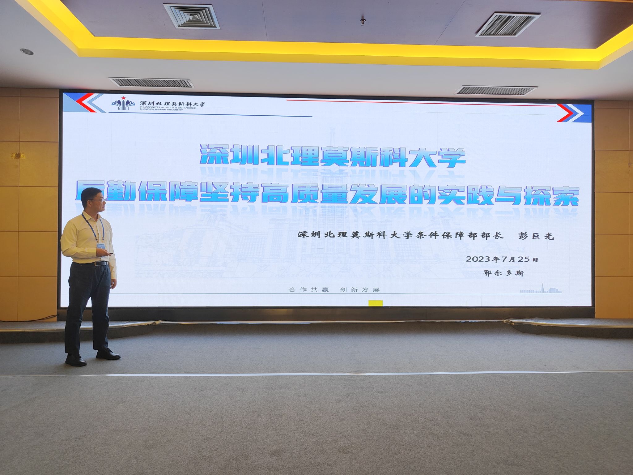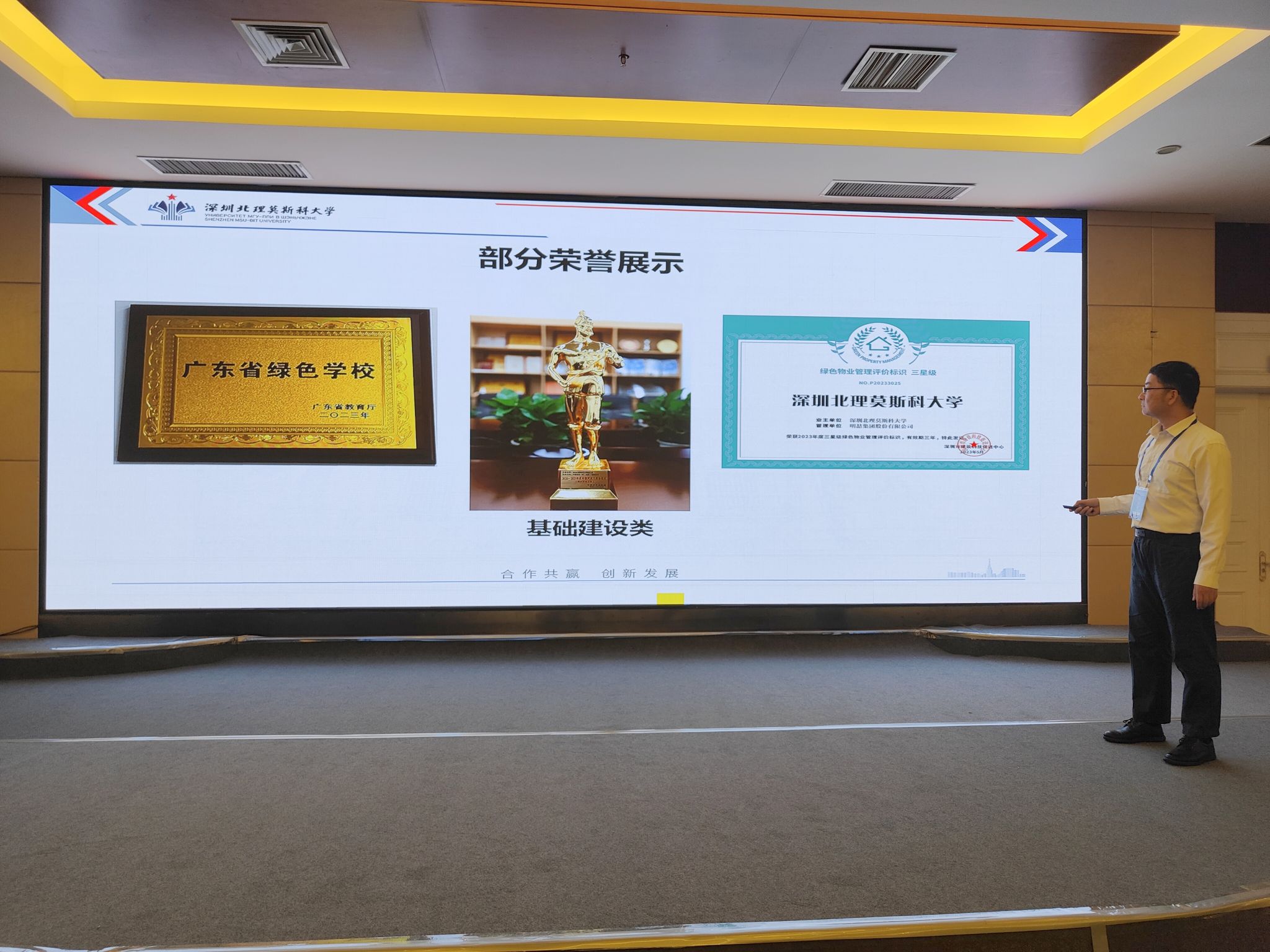 会上,ac米兰官网中文网站条件保障部部长彭巨光教授受邀上台,就“ac米兰官网中文网站后勤保障坚持高质量发展的实践与探索”发表演讲。彭巨光部长从“ac米兰官网中文网站介绍、条件保障部介绍、学校的后勤运作模式和工作内容说明、学校的后勤合作伙伴简介、学校后勤发展未来期望达成的目标”五个方面向两百多名与会嘉宾进行ac米兰后勤工作介绍和经验交流。