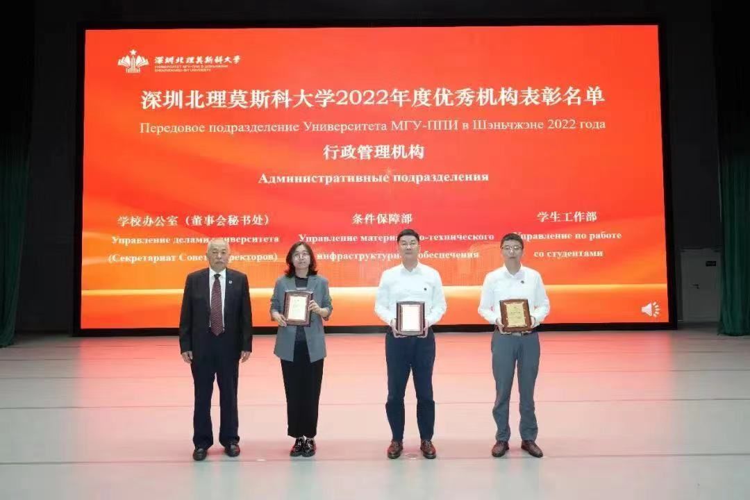会上,第一副校长谢·尼·伊万琴科宣读2022年度优秀机构表彰决定。条件保障部荣获优秀机构,校长李和章为优秀机构颁奖。