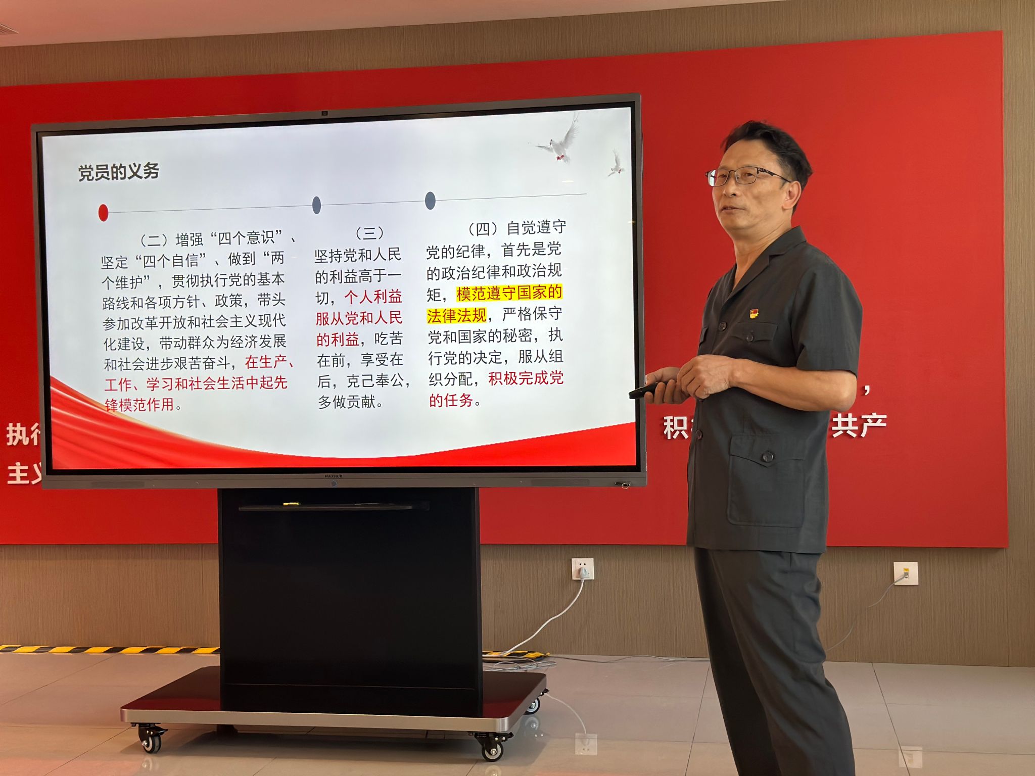 马克思主义学院思政课教授赵飞龙为条件保障部全体职员授课,讲授党员的义务与责任以及违反党纪国法的严重后果,告诫大家要不忘初心,坚守底线,永葆忠诚,给全体参会人员上了一堂深刻的廉政教育课。