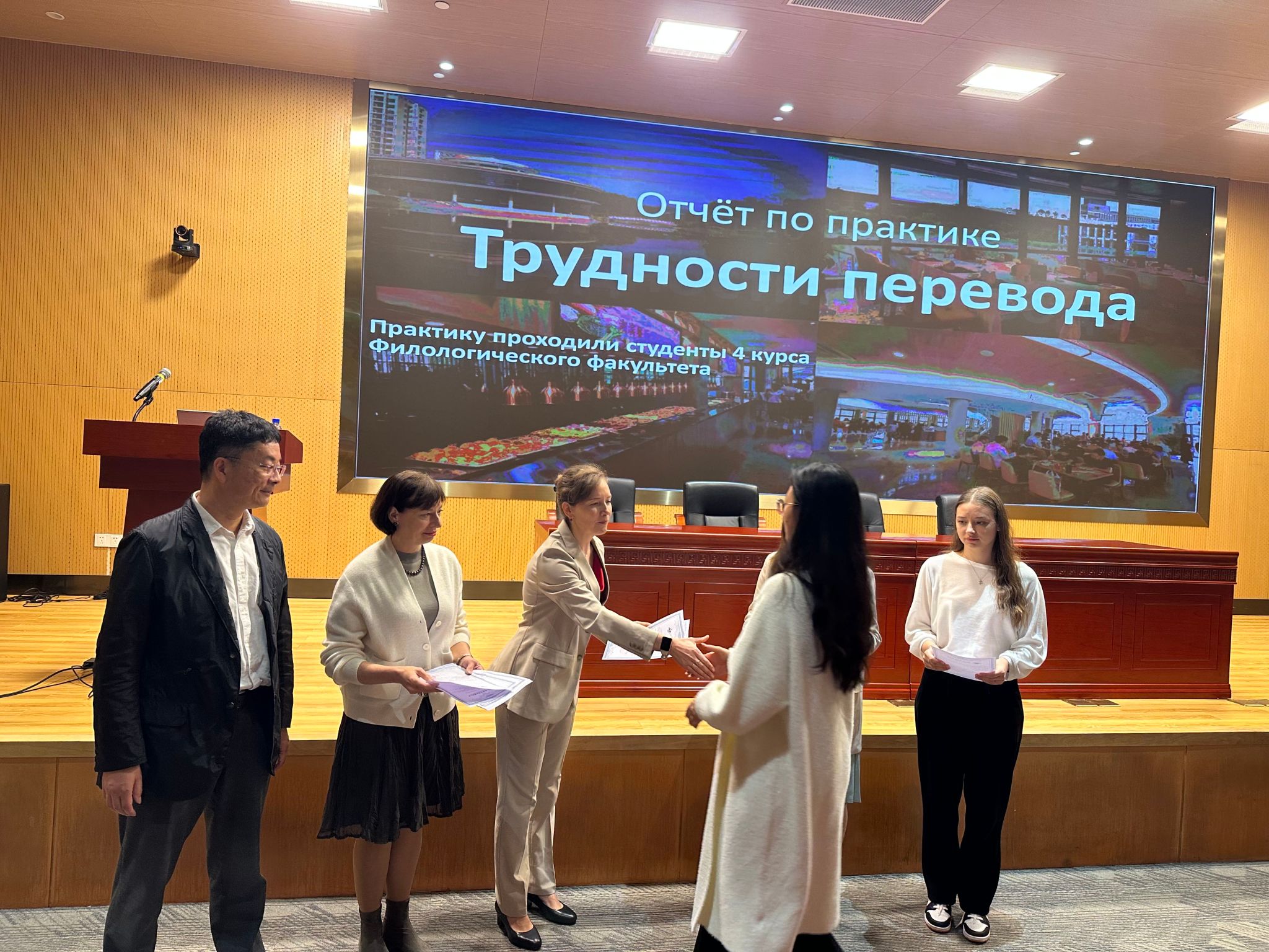 为进一步提高后勤服务学生的功能,把后勤服务与学生社会实践相结合,构建学生参与后勤事务的多元化服务平台,加强学生对后勤服务保障工作的理解、支持和参与意识,共同促进后勤服务保障工作向精细化、优质化、后勤服务与教学融合化方向发展。2024年元月2日上午,在ac米兰官网中文网站图书馆一楼报告厅,语言系、条件保障部主持召开了关于参加食堂菜单翻译、垃圾分类宣传同学的颁奖活动。语言系KALMYKOVA MARINA卡尔梅科娃·玛丽娜老师和系副主任DANILINA OLGA达尼利娜·奥莉加老师,条件保障部部长彭巨光教授,条件保障部后勤主管、国际学生辅导员牛大钧老师参加颁奖仪式,有30多位同学获得《实习证明》。