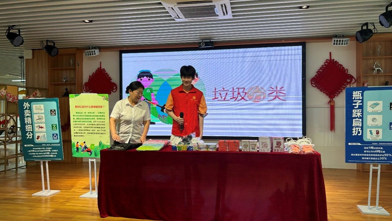 3.为进一步加强校园环保教育、改善校园环境和校容校貌、努力做好学校生活垃圾源头控制和资源再生利用,开展了如火如荼的垃圾分类及宣传活动,学校在教学区、宿舍区分别设置了垃圾分类收集容器、垃圾桶上张贴“可回收垃圾”、“其他垃圾”、“有害垃圾”、“厨余垃圾”的标志,通过宿舍区展板展示、人员密集区的宣传单张贴、利用学生群体力量,在学生内部进行广泛宣传、同时联合物业公司及学生会成员在食堂人员密集的时间点开展“垃圾分类有奖问答”的活动,学生热情高涨、积极参与,以上活动的开展有效控制了混装垃圾的数量、减少了再生资源的浪费,有效宣传了垃圾分类的重要意义,阐明垃圾对社会生活造成的严重危害,同时教会学生垃圾分类的知识,呼吁学生的积极参与,使学生进行垃圾分类逐渐成为自觉和习惯性行为。同时对师生宣传了节约粮食,有效提升师生节约粮食意识。