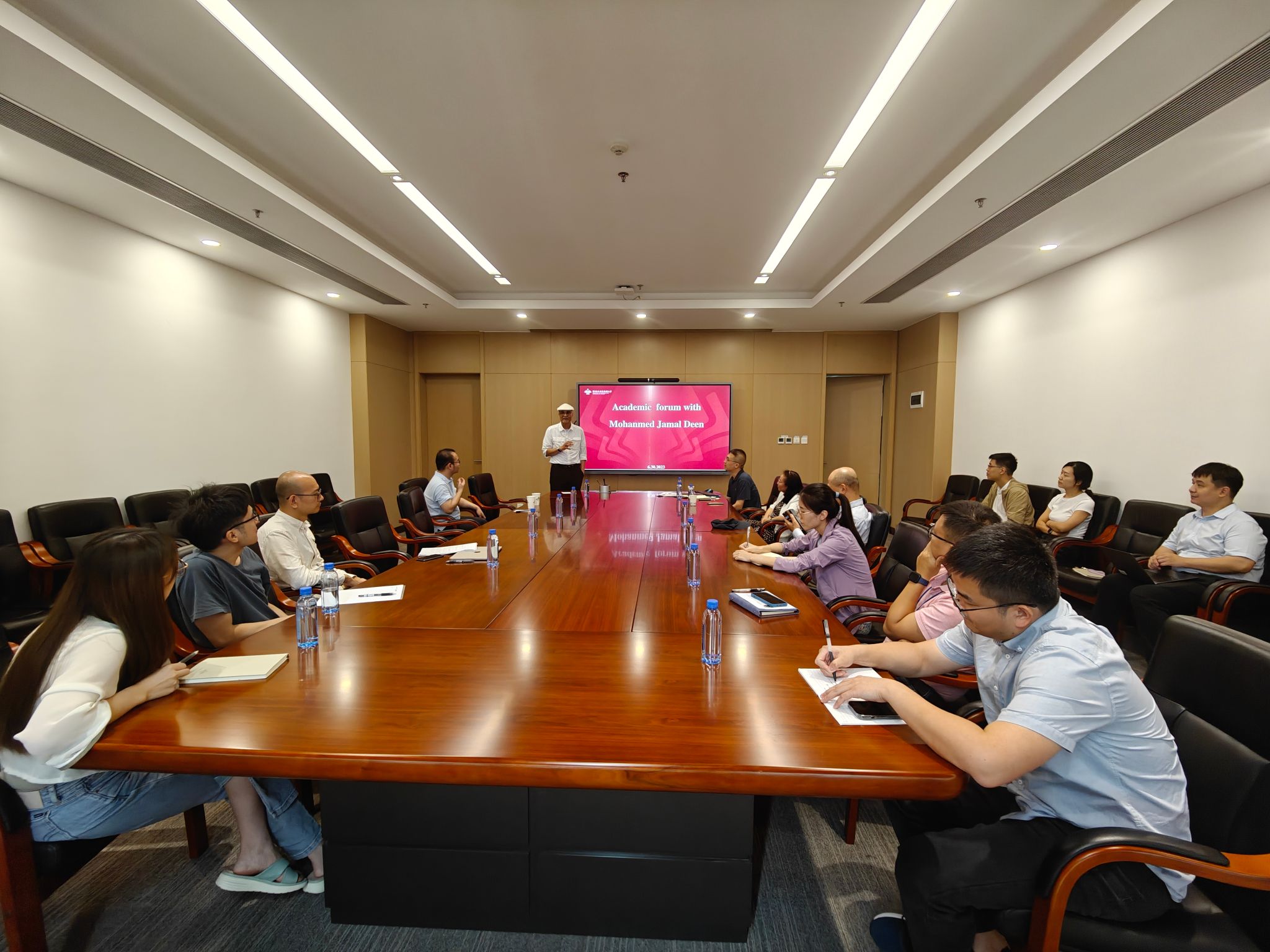 6月30日上午,中国科学院外籍院士,加拿大皇家学会院士,前加拿大皇家学会科学院院长,加拿大工程研究院院士,加拿大工程院院士,欧洲科学与艺术学院院士,默罕默德·贾马·迪恩(Mohamed Jamal Deen)教授受邀到访ac米兰官网中文网站,学校校长李和章、第一副校长谢尔盖·尼古拉耶维奇·伊万琴科、学校科研事务部部长德米特里·谢尔盖耶维奇·施塔廖夫、工程系副主任程杞元陪同,莫斯科国立大学副校长列昂尼德·弗拉基米罗维奇·古谢夫作为嘉宾一道参与座谈交流。