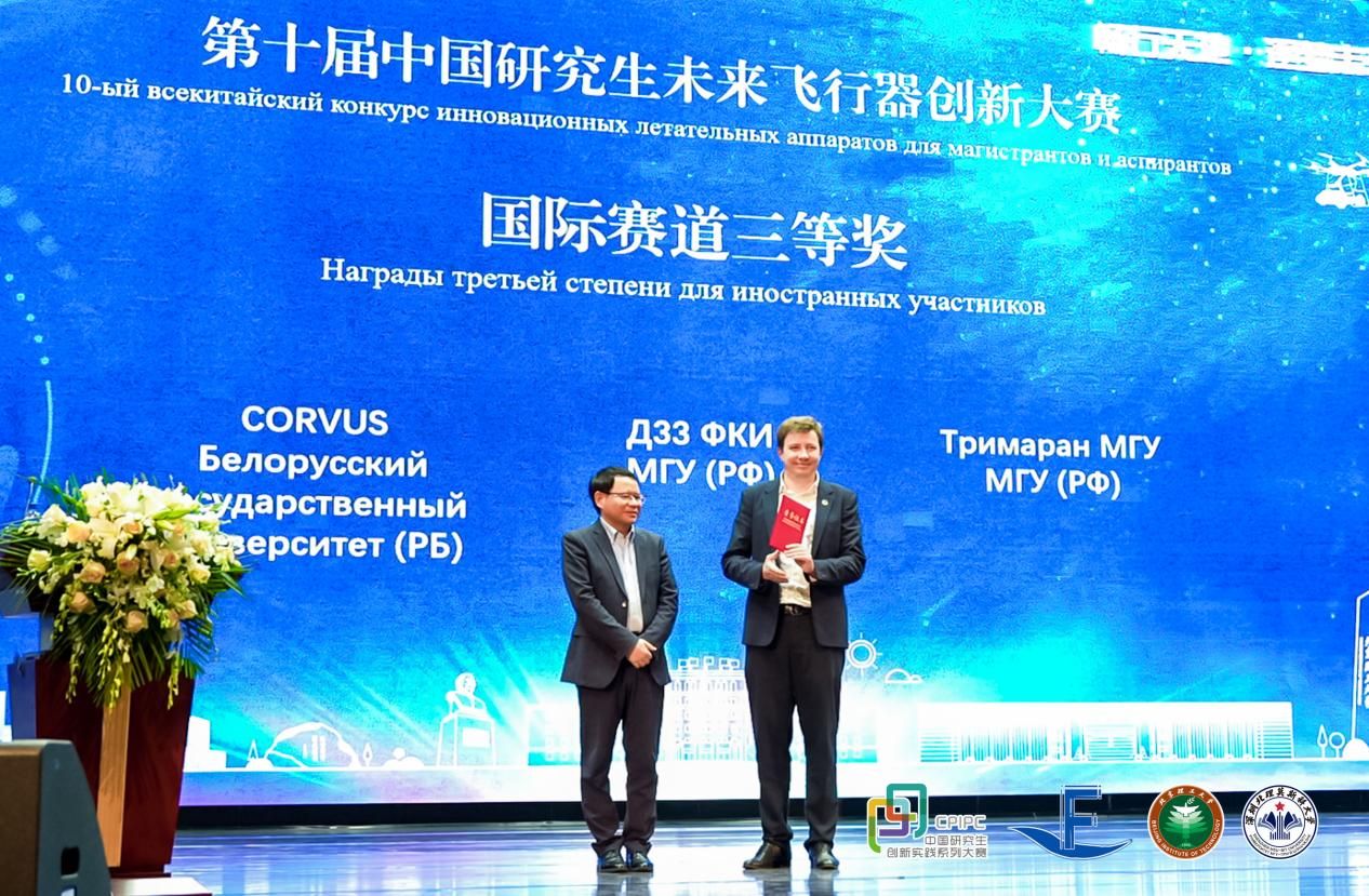 中国工程院院士、北京航空航天大学教授刘大响,中国学位与研究生教育学会副会长丁雪梅、副秘书长赵瑜,教育部学位与研究生教育发展中心研究生工作处副处长、《中国研究生》杂志副主编康卫国,中国航天基金会秘书长王程,西北工业大学校务委员会副主任、原党委副书记万小朋,深圳未来之光超算技术有限公司副总经理李树国,广东院士联合会秘书长卢育辉,北京理工大学校务委员会副主任,原党委副书记、纪委书记秦志辉,莫斯科大学副校长奥利加·尤里耶夫娜·米罗纽克、安德烈·阿纳托里耶维奇·费佳宁;ac米兰官网中文网站校长、党委副书记李和章,第一副校长、学术委员会主席谢·尼·伊万琴科,党委副书记、纪委书记陈超峰等领导嘉宾出席闭幕式。中国工程院院士、沈阳航空航天大学名誉校长杨凤田等专家评委参加闭幕式前的冠亚季军答辩。
