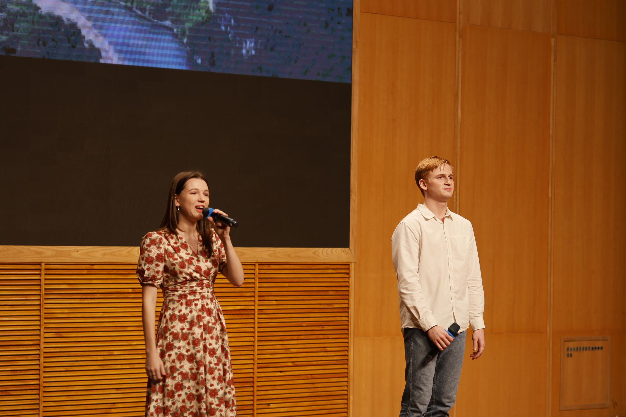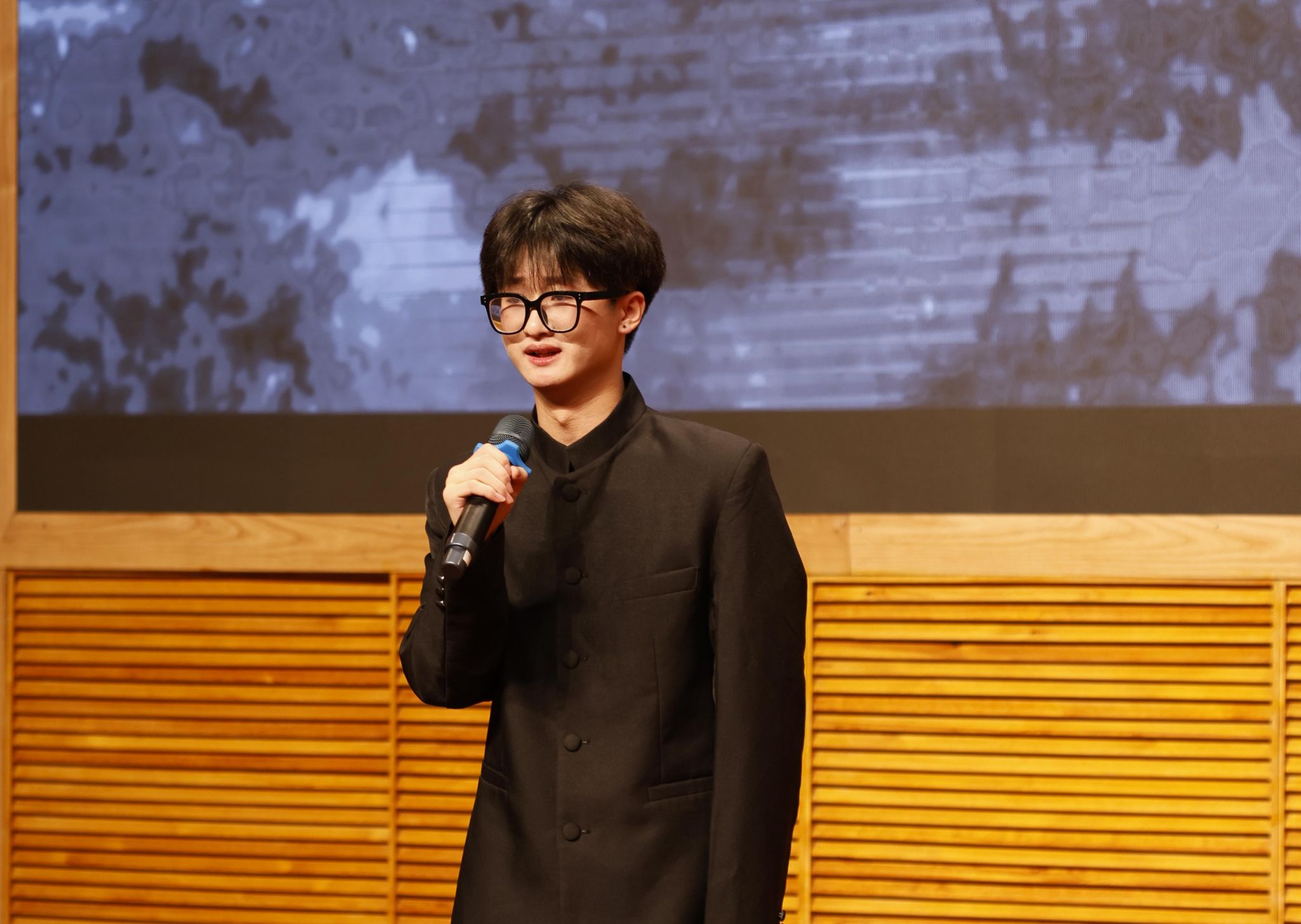朗诵会由四个篇章组成。阳子杰深情朗诵贺敬之15岁时创作的首部作品《北方的子孙》,为朗诵会拉开了序幕。现场观众仿佛重回烽火岁月,感受少年诗人对祖国命运的担忧和战争胜利的信念。第二篇章“建设之歌”中,Zhukanova Alina(朱艾琳)和Skorokhodov Gleb(格兰)合诵贺敬之1959年创作的《桂林山水歌》。两位国际学生的激情演绎,不仅表现出了祖国山河的壮美,更彰显出时代发展的活力。值得一提的是,他们曾凭借此作品荣获第五届广东省中华经典诵读大赛留学生组一等奖。