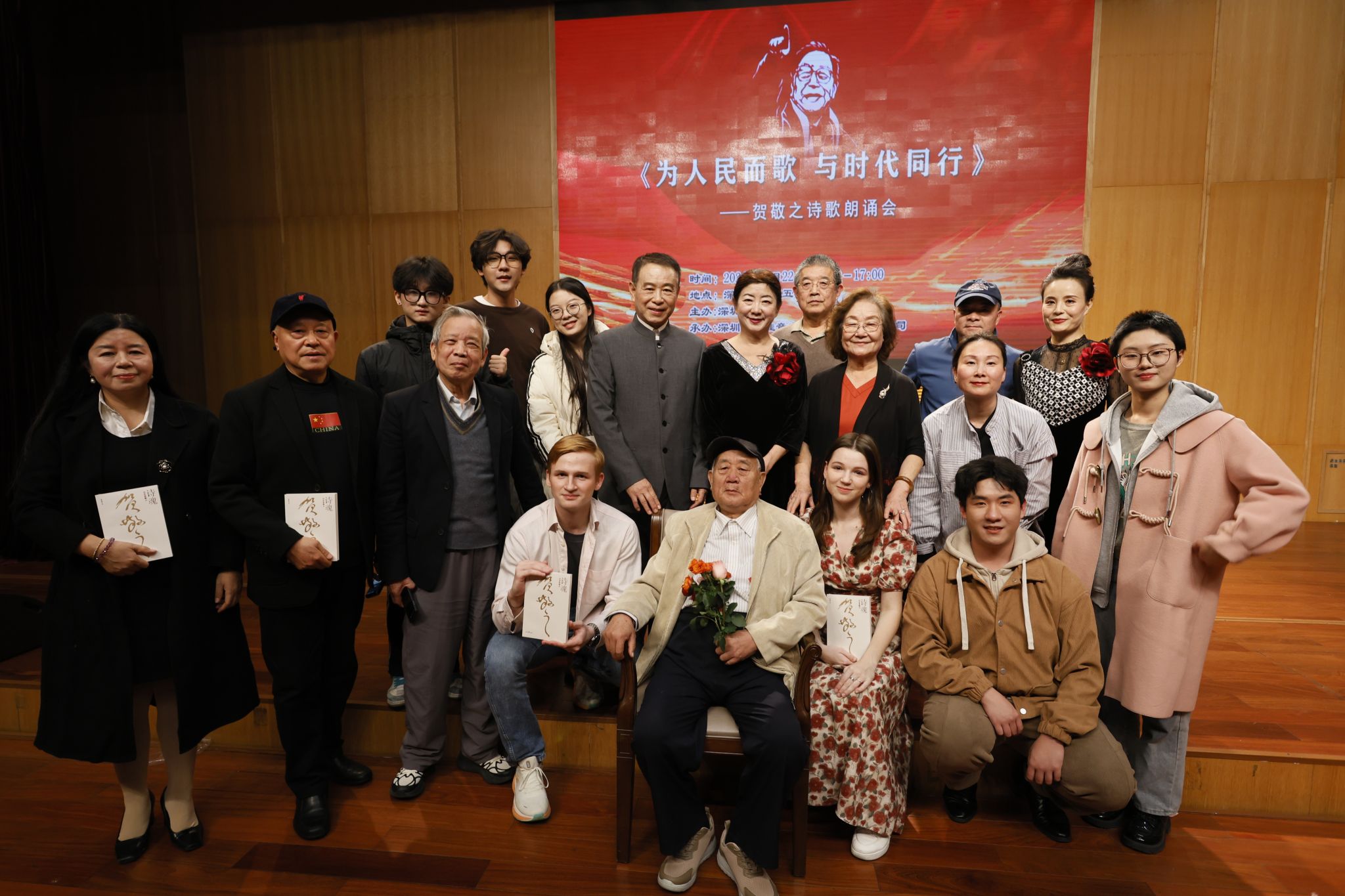 贺敬之出生于1924年11月5日,是我国著名诗人、剧作家。他15岁参加抗日救亡运动,创作了大量歌颂时代、歌颂人民的作品。此次朗诵会作品讲述的诗歌故事跨越近百年,用一幅幅生动的诗歌画像,描述了从延安到深圳蛇口、从抗战到改革开放的时代乐章。为庆祝这一文化盛宴圆满完成,由人民日报出版社发行的祁念曾著作《诗魂——百岁贺敬之》进行了现场赠予,作家祁念曾与读者朋友还进行了亲密互动。