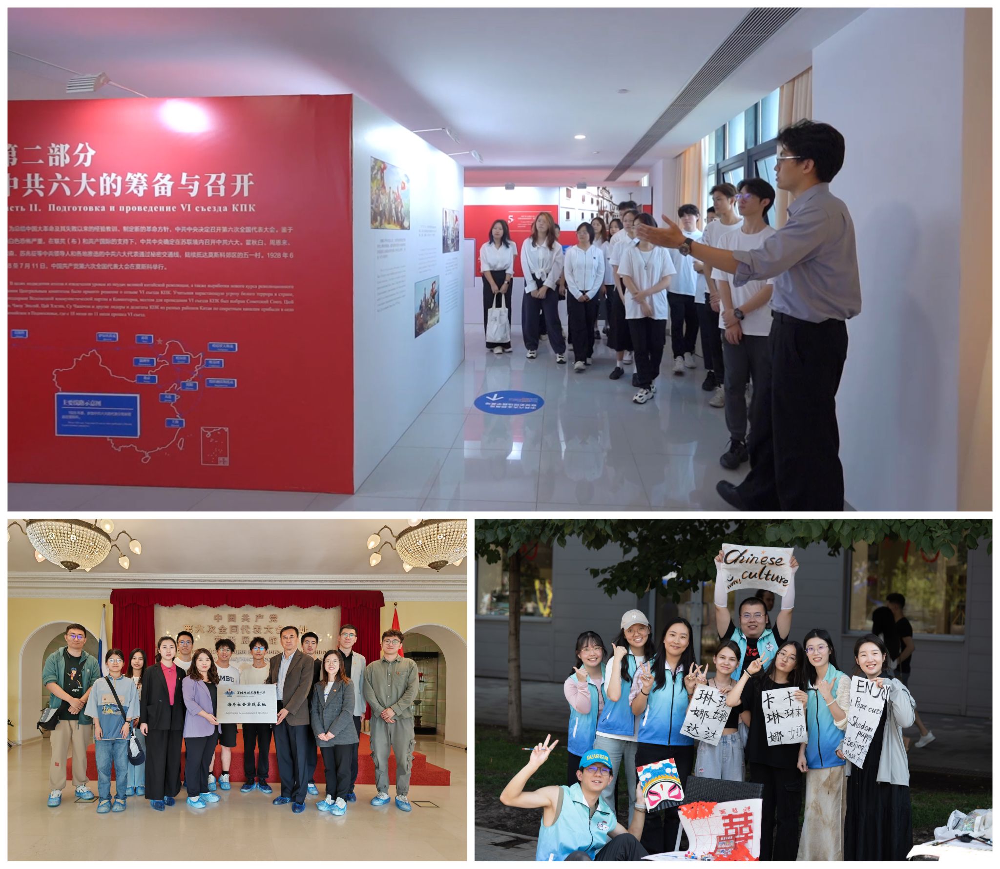 “习近平总书记出席中共六大纪念馆建馆仪式时表示,中共六大会址是中国革命历程的重要旧址,也是中俄两国人民深厚友谊的重要象征。”课程结束后,李俊达同学成为学校宣传思想文化阵地的一名学生讲解员,在学校党史学习教育基地面向校外来访单位和校内同学等讲解中共六大史。《看深圳·懂中国》特色思政课在价值认同环节,强调要发挥学生主体力量,引导同学们在实地实践中深化理论认同、外化于个人行动。这门课程培育了多个实践育人项目,包含校内的学生讲解员队伍、学生朋辈导师等,让授课对象成为讲课主体,以青年学生带动更多的青年;积极组织中外学生在深圳的社区开展志愿服务,到俄罗斯、哈萨克斯坦等“一带一路”沿线国家,前往重庆、寻乌等地进行社会实践。