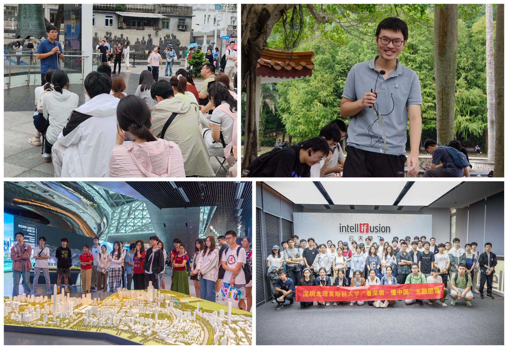 “1899年3月18日,共住一条街、共饮一井水的沙头角居民被迫分隔在界碑两侧,直至香港回归。这条中英街浓缩了中华民族从屈辱走向抗争、崛起、复兴的历史进程……”10月20日,在中英街警世亭旁边,学校专职团干部赵明康老师给同学们讲述了一节生动的百年中英街思政实践课。《看深圳·懂中国》特色思政课在第一阶段构建“情境体验”环节,带领同学们到深圳经济发展、文化建设和生态等代表性地方开展现场教学,例如云飞励天科技公司、深圳市当代艺术与城市规划馆以及仙湖植物园等,旨在从经济建设、政治建设、文化建设、社会建设和生态文明建设等5个维度,绘制青年“看深圳”路线图,让同学们在“亲历”深圳发展奇迹中理解改革开放的伟大成就和重要启示。