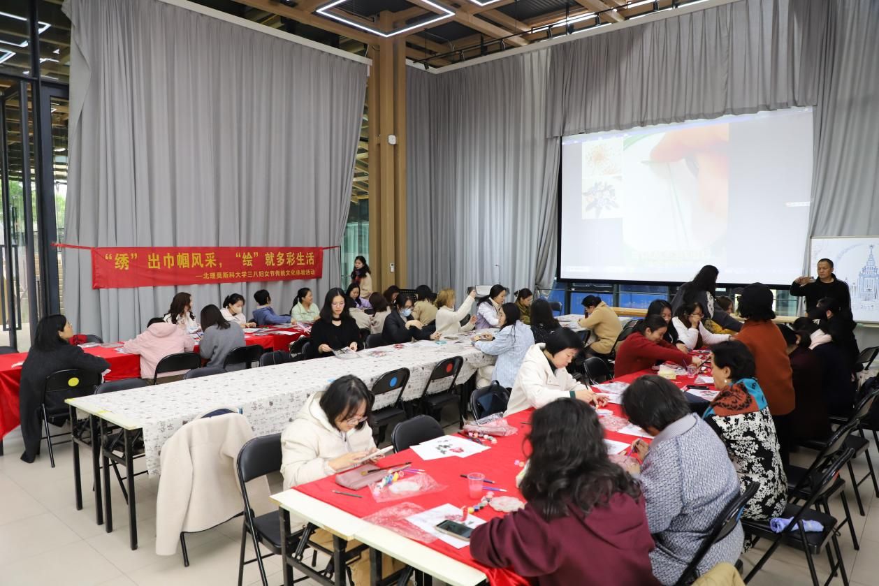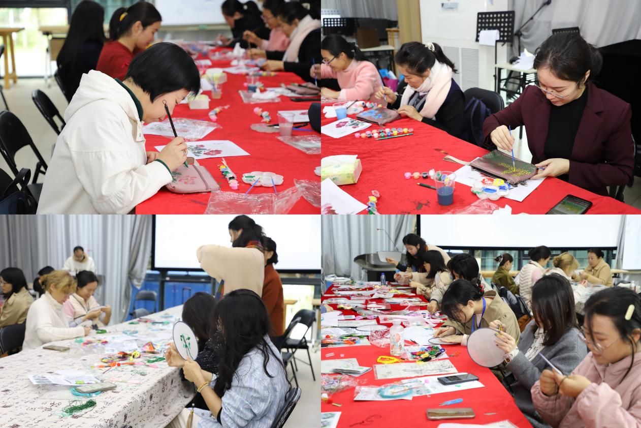 同日,丝绸手作活动在学生活动中心举行。女教职工们齐聚一堂,沉浸于传统手工艺的魅力之中。她们在丝绸手包上精心描绘图案,在真丝团扇上一针一线地穿梭,绣出精美的花样,以传统手作传递节日祝福,用指尖艺术装点春日时光。