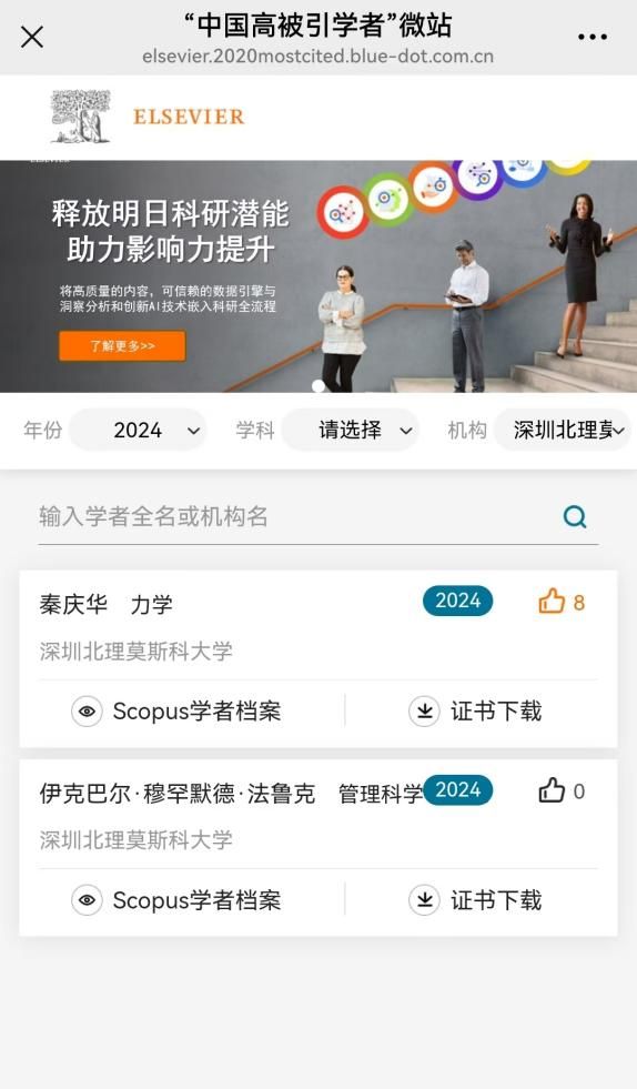 3月25日,爱思唯尔(Elsevier)正式发布2024“中国高被引学者”(Highly Cited Chinese Researchers)榜单。2024“中国高被引学者”上榜共计6388人, 来自547所高校、企业及科研机构,覆盖了10个教育部学科领域中的83门一级学科。ac米兰官网中文网站前沿交叉技术研究院院长秦庆华教授、经济系伊克巴尔·穆罕默德·法鲁克高级讲师分别在工学-力学和管理学-管理科学与工程领域成功入围该榜单。