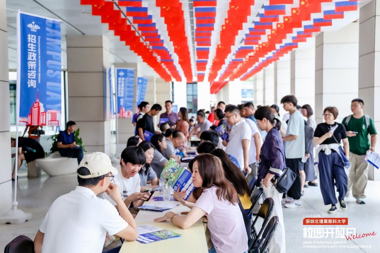 开放日当天,教学楼一层连廊、主楼两侧连廊咨询展台人头攒动、气氛火热。本次开放日面向考生和家长提供“一站式”咨询服务,共设置定点咨询展台11个,包括招生政策咨询,人才培养咨询,学生素质教育、就业、奖学金等咨询,学生社团咨询,俄语学习咨询以及深圳和部分在粤合作办学高校招生咨询等。