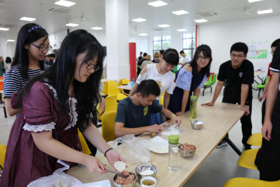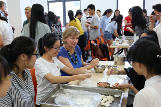 活动现场一派热闹景象,学生们好奇地围在长桌边,在俄罗斯和中国老师们的示范下,有的包俄式饺子,有的包中式饺子。大家热火朝天地忙活着,不一会儿,一个个形状各异的饺子纷纷出炉,引来一片片喝彩和掌声。同学们一边品尝俄式饺子和中式饺子,一边观看了俄罗斯动画片《你等着吧》,还演唱了俄罗斯经典歌曲《喀秋莎》。整个活动现场笼罩在欢乐祥和、其乐融融的氛围中,就像一个和睦温暖的大家庭。