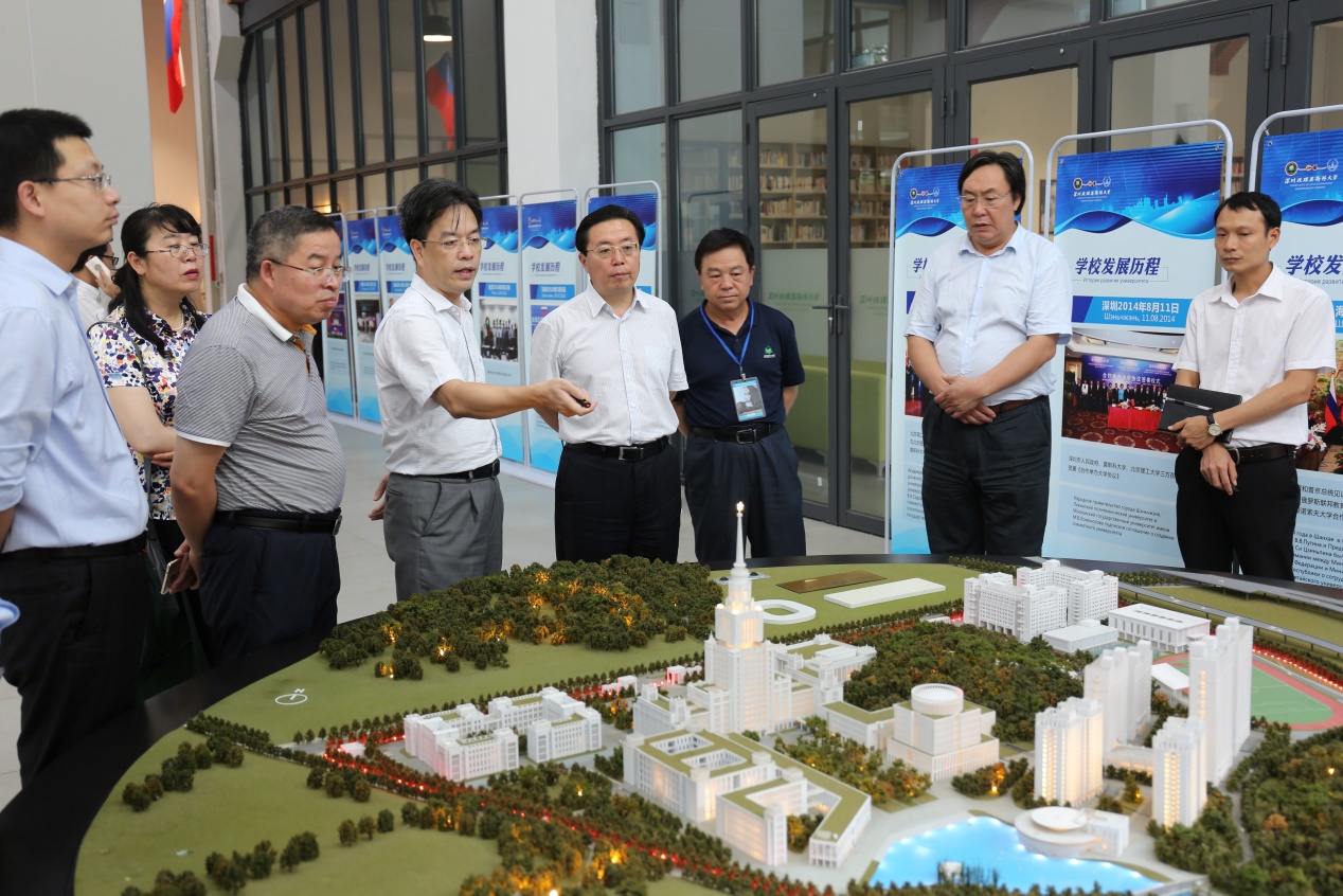 孙书记一行分别参观了我校过渡校区和永久校区,了解了学校的办学历程。