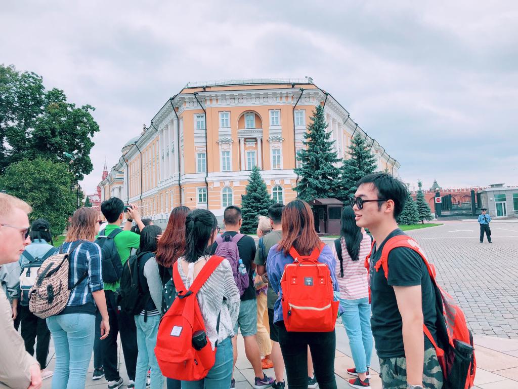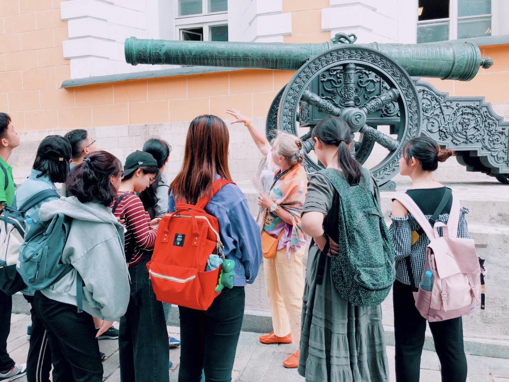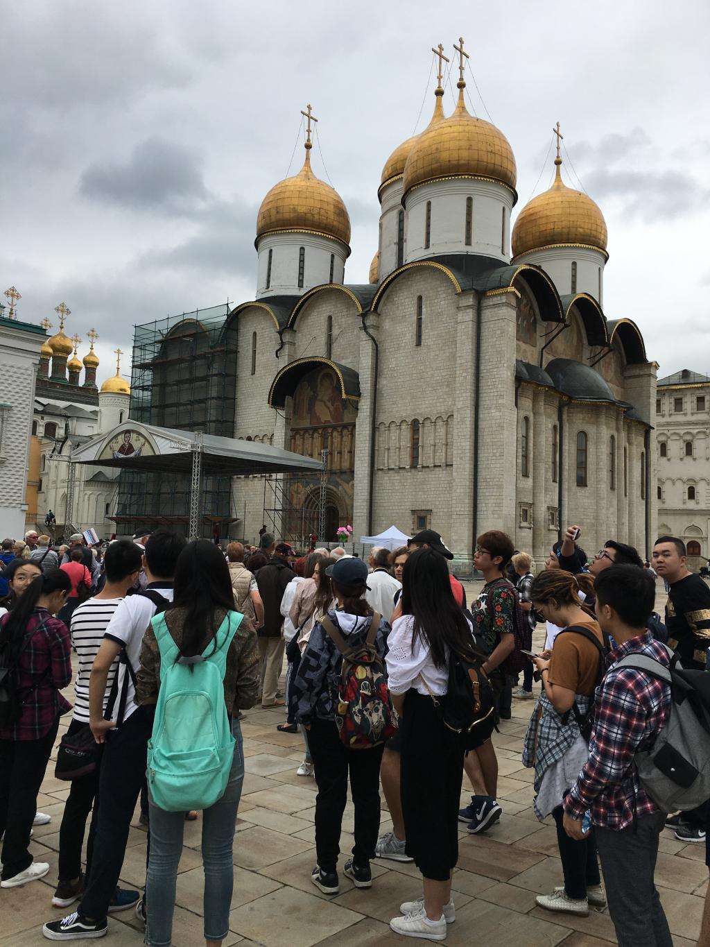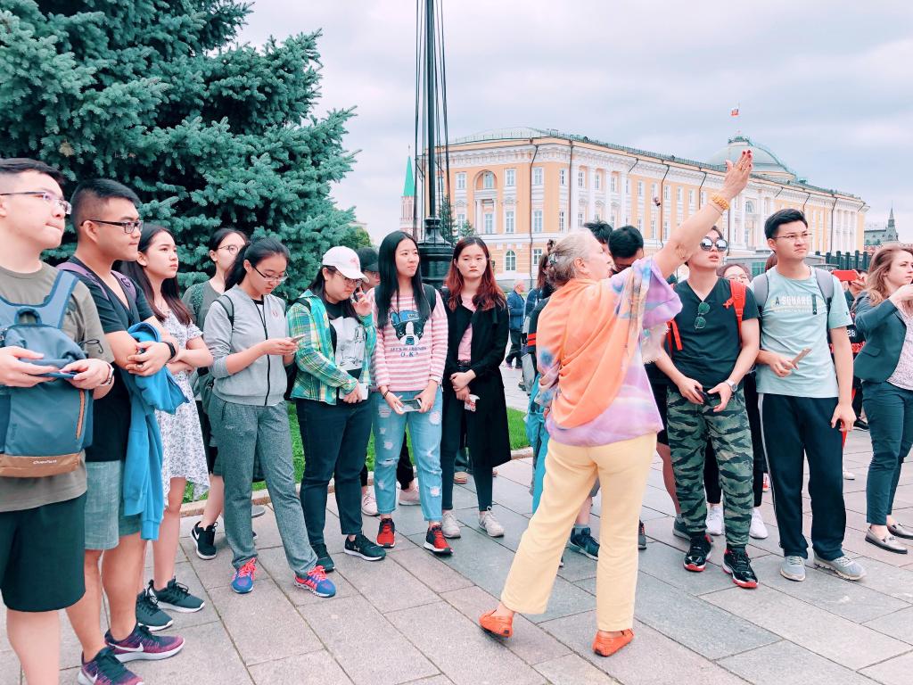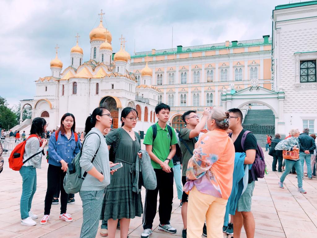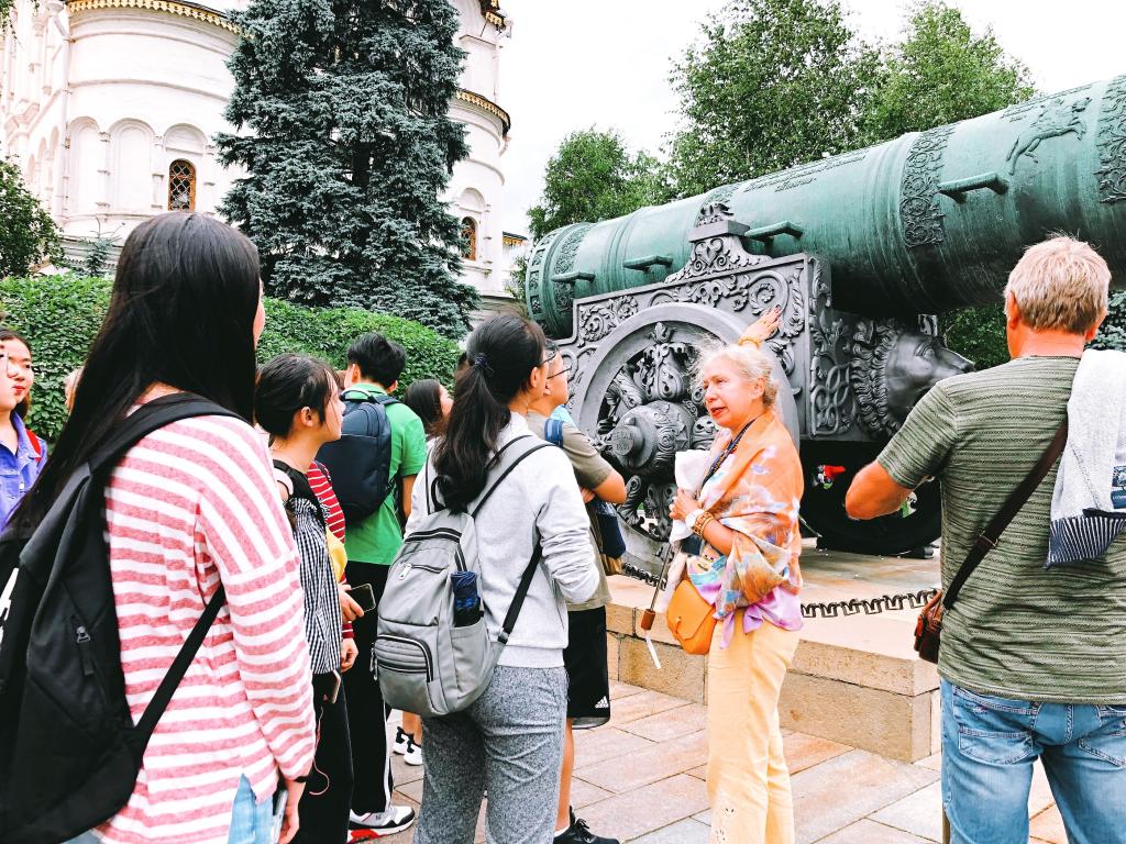 7月24日,我校夏令营活动进入第五日,学生们的学习状态已渐入佳境。今天的俄语课主题是《俄罗斯历史主要事件》。课后,同学们一同前往莫斯科市中心参观克里姆林宫。从13世纪起克里姆林宫就与俄罗斯所有重大历史政治事件有关。它是俄国历代帝王的宫殿(目前是俄罗斯总统办公所在地,俄罗斯国家形象标志),是俄罗斯民族最负盛名的历史丰碑,也是全世界建筑中最美丽的作品之一。同学们在俄罗斯老师和导游的带领下,走进克里姆林宫,感受它那高大坚固的围墙、壮观的塔楼和钟楼,以及气宇轩昂的建筑,听导游一一讲解,参观炮王、钟王和圣母升天大教堂等。切身实地感受和了解俄罗斯的历史文化。