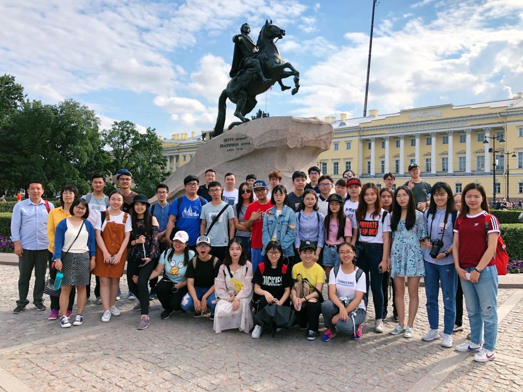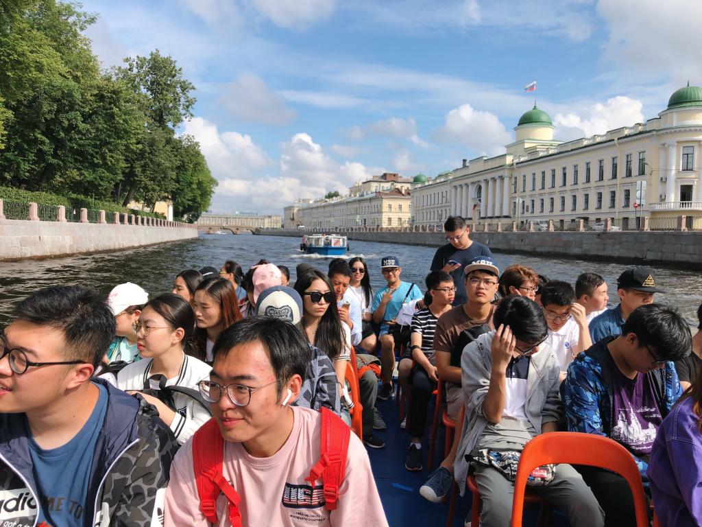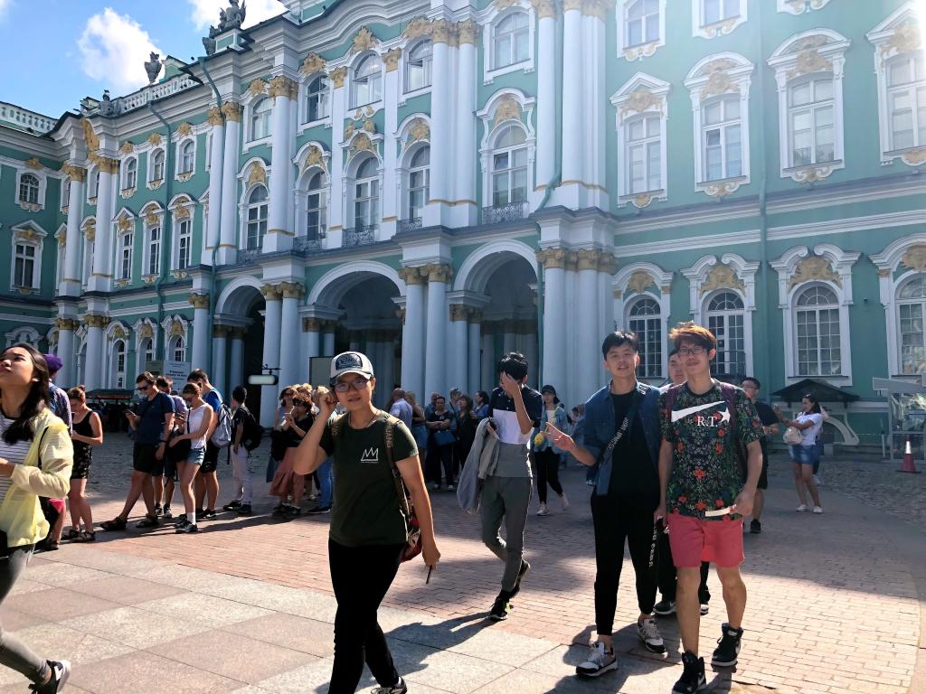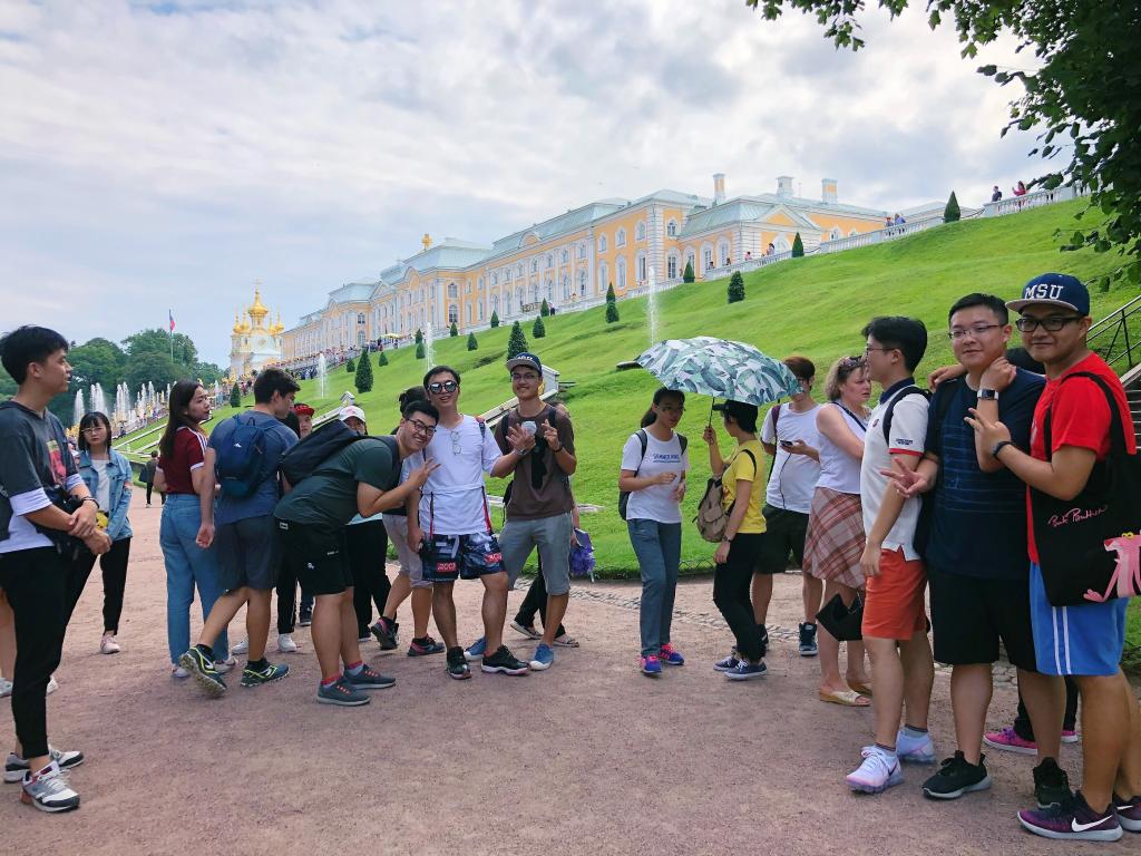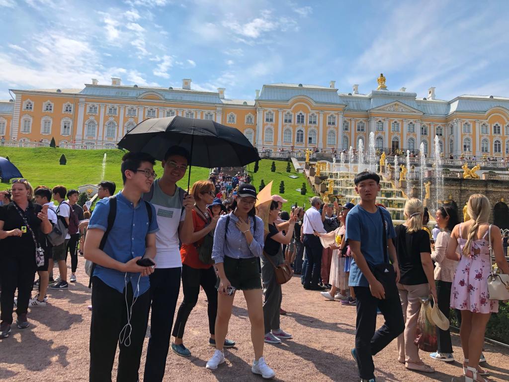 7月26-27日,我校夏令营同学抵达俄罗斯第二大城市圣彼得堡进行为期两天的游学活动。圣彼得堡始建于1703年,承载着深厚的文化和历史。她风光迤逦,河流纵横,桥梁众多,素有“北方威尼斯”之称。同学们在莫大语言文化学院副院长恰斯特内赫和导游的带领下,参观了久负盛名的彼得宫(夏宫)、世界四大博物馆之一的埃尔米塔什博物馆(冬宫)、青铜骑士(彼得大帝纪念碑),乘船游览了涅瓦河,欣赏了沿岸众多保存完好的历史建筑等。这里深厚的历史积淀和浓厚的文化艺术气息让同学们惊叹不已。