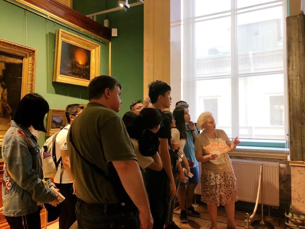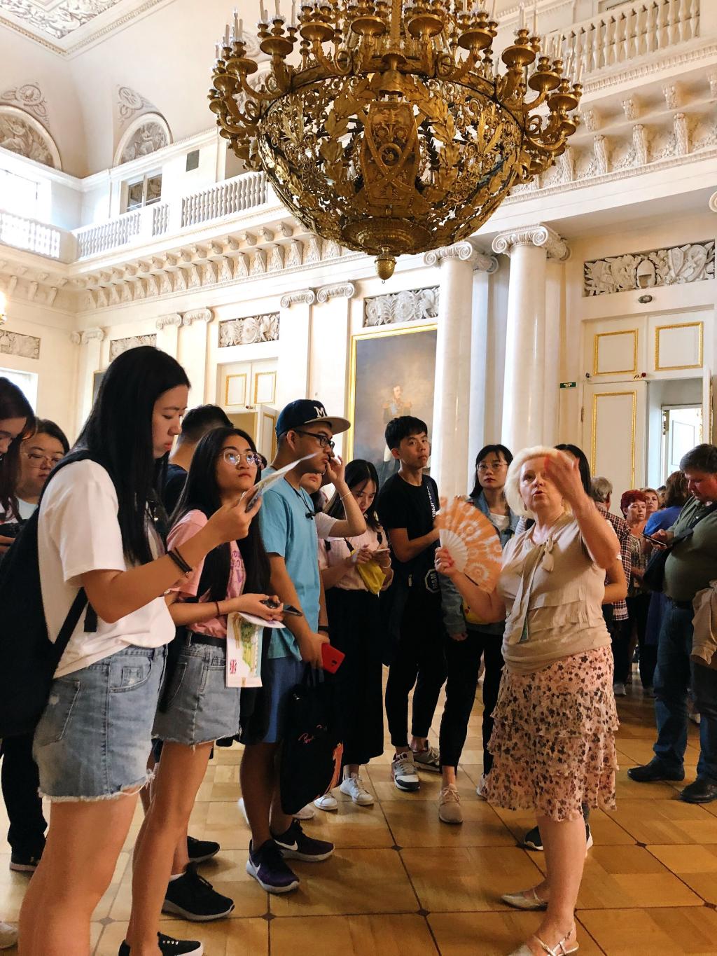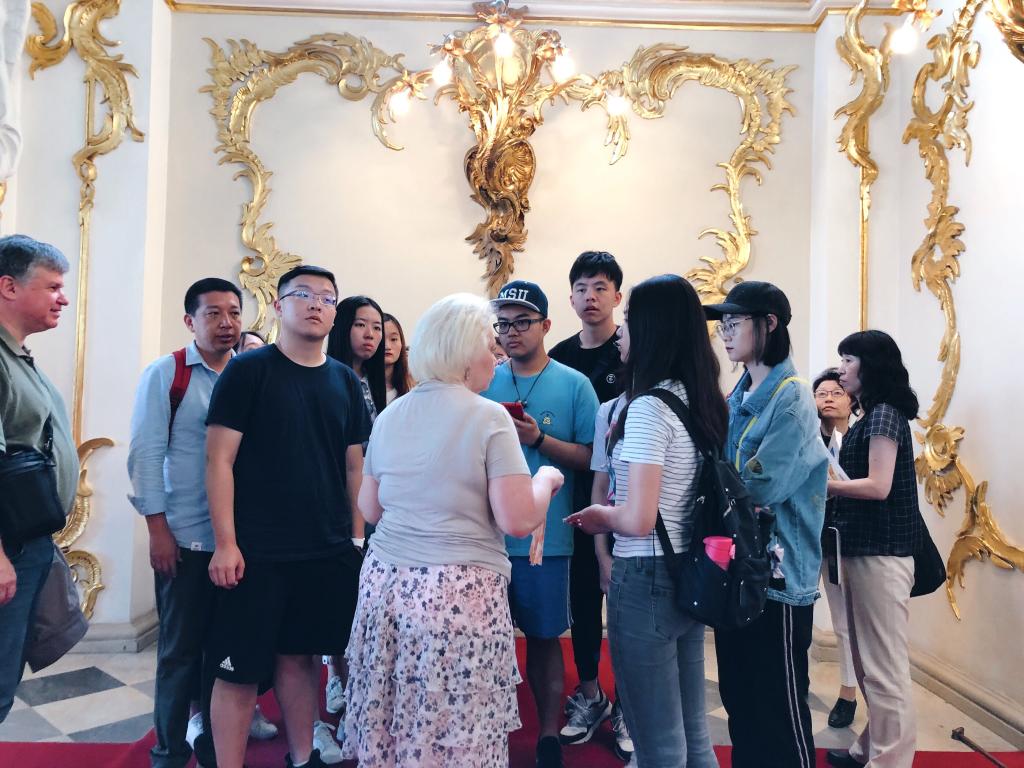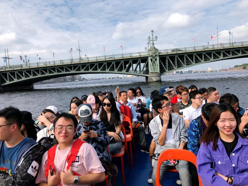 7月26-27日,我校夏令营同学抵达俄罗斯第二大城市圣彼得堡进行为期两天的游学活动。圣彼得堡始建于1703年,承载着深厚的文化和历史。她风光迤逦,河流纵横,桥梁众多,素有“北方威尼斯”之称。同学们在莫大语言文化学院副院长恰斯特内赫和导游的带领下,参观了久负盛名的彼得宫(夏宫)、世界四大博物馆之一的埃尔米塔什博物馆(冬宫)、青铜骑士(彼得大帝纪念碑),乘船游览了涅瓦河,欣赏了沿岸众多保存完好的历史建筑等。这里深厚的历史积淀和浓厚的文化艺术气息让同学们惊叹不已。