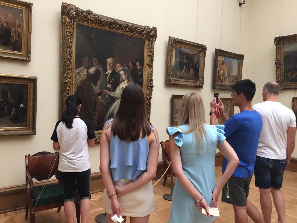 7月28日下午,我校夏令营同学带着老师课堂上布置的问题,乘坐地铁来到位于莫斯科河畔的大名鼎鼎的特列季亚科夫画廊,欣赏俄罗斯的油画精品,感受俄罗斯艺术殿堂的独特魅力。