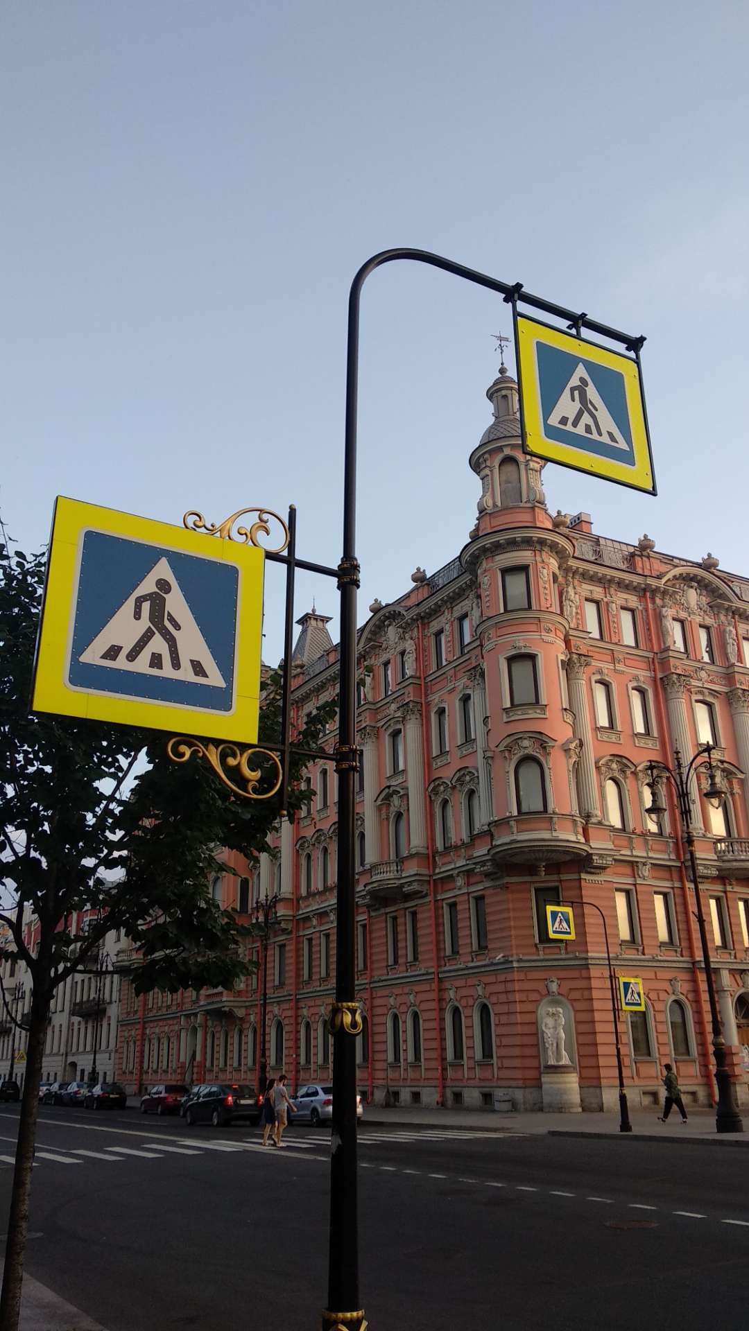 整洁干净的街道,三三两两的行路者,建筑,行道树,小径,河流,桥,甚至只是一个交通指示牌...有时你会停下来,惊诧于这座城市对于这些的执着,对于细节的执着,对于古欧式建筑风格的不改变的执着,对于连式矮层建筑的执着。在某个时刻,你会明白,无论是这些,还是冬宫里华丽的宫殿,和彼得宫城的华丽庄园,都是彼得堡人对于美的真切追求,对于美好的发自内心的欣赏与尊重,都是一种精致的生活态度。