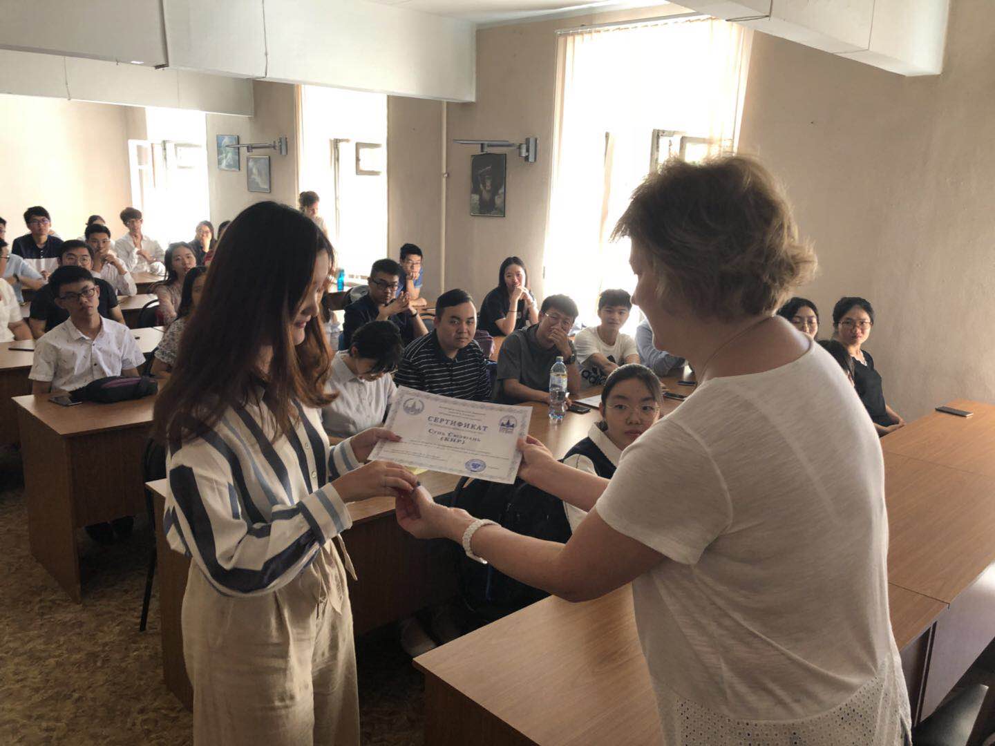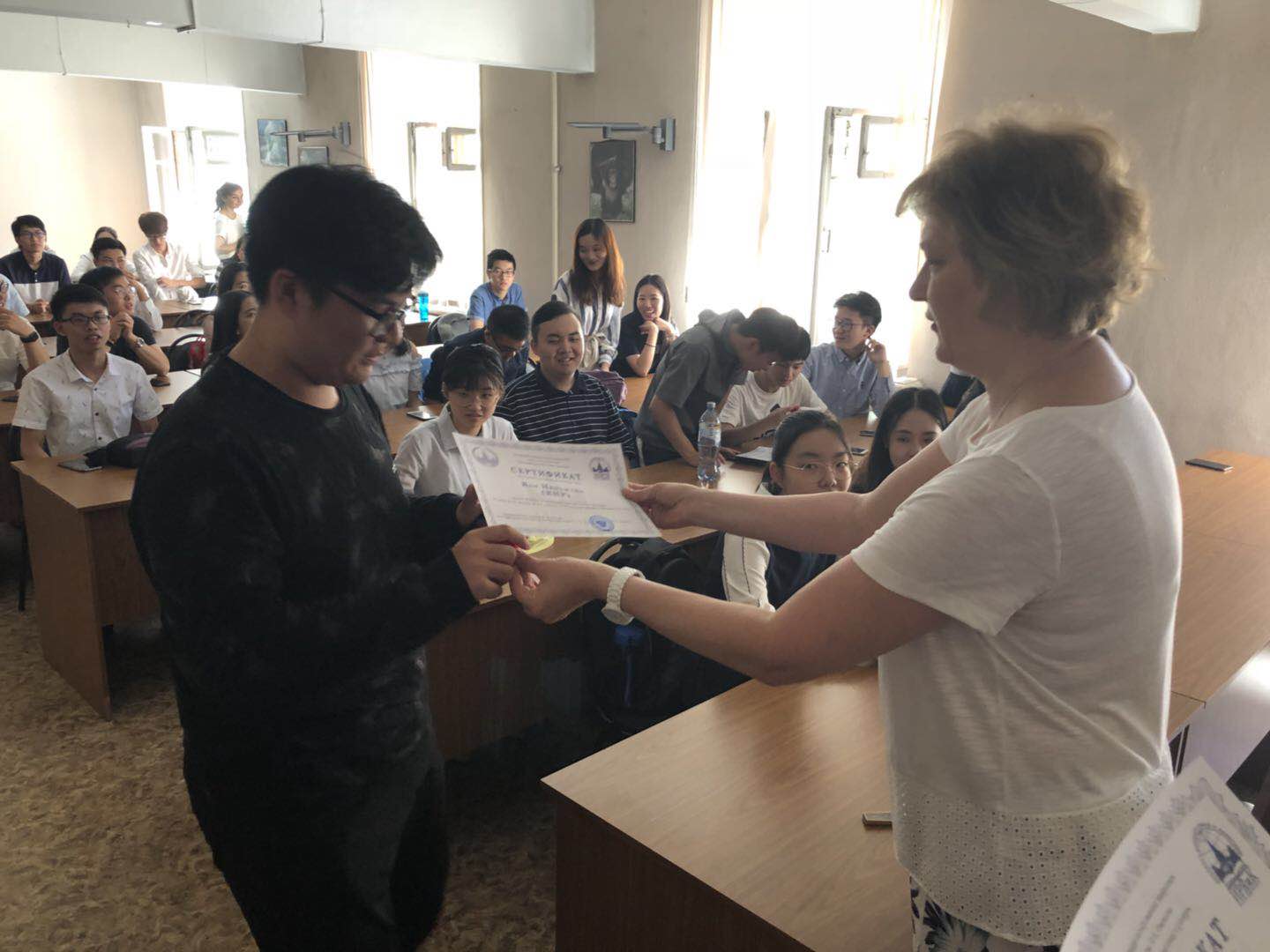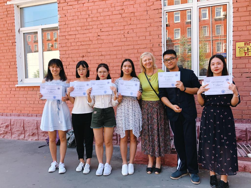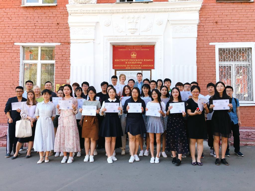 8月1日,最后一次俄语课结束后,我校2018第一批夏令营的36名同学以及带队老师参加了莫斯科大学语言文化学院举行的结业仪式。ac米兰官网中文网站副校长塔拉索夫、莫斯科大学语言文化学院院长科夫通、副院长特罗菲莫娃以及任课俄语老师出席了结业典礼。塔拉索夫副校长、科夫通院长分别致辞,祝贺同学们顺利完成暑期夏令营俄语课程,并鼓励同学们努力学习俄语,将来做中俄两国人民合作的桥梁。我校带队老师李小青和牛大钧在会上分别发言,对语言文化学院对本次活动的精心组织和安排,以及俄语老师的辛勤付出表示感谢。随后语言文化学院院长科夫通展示了赠送给同学们的纪念品,并向同学们一一颁发结业证书和小奖品。至此,为期两周的夏令营活动顺利结束。本次夏令营之旅使同学们不仅增长了俄语技能,开阔了眼界,加深了对俄罗斯历史文化和当今社会生活的了解,而且磨练了意志,收获了友谊和快乐。
