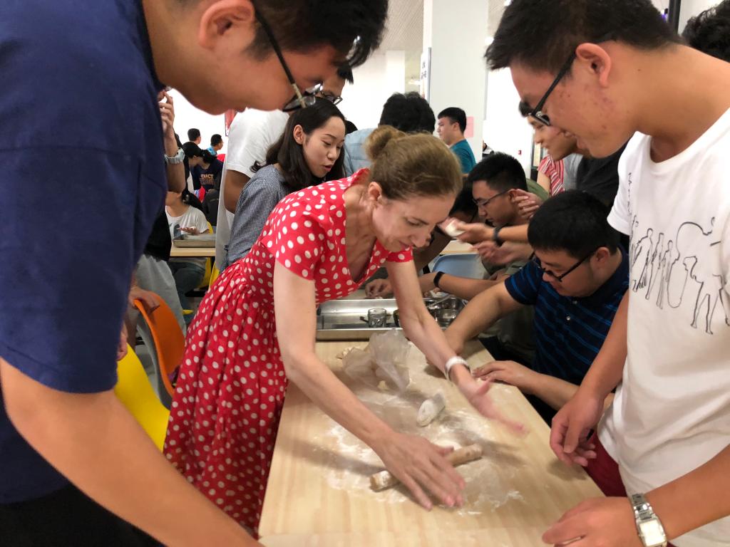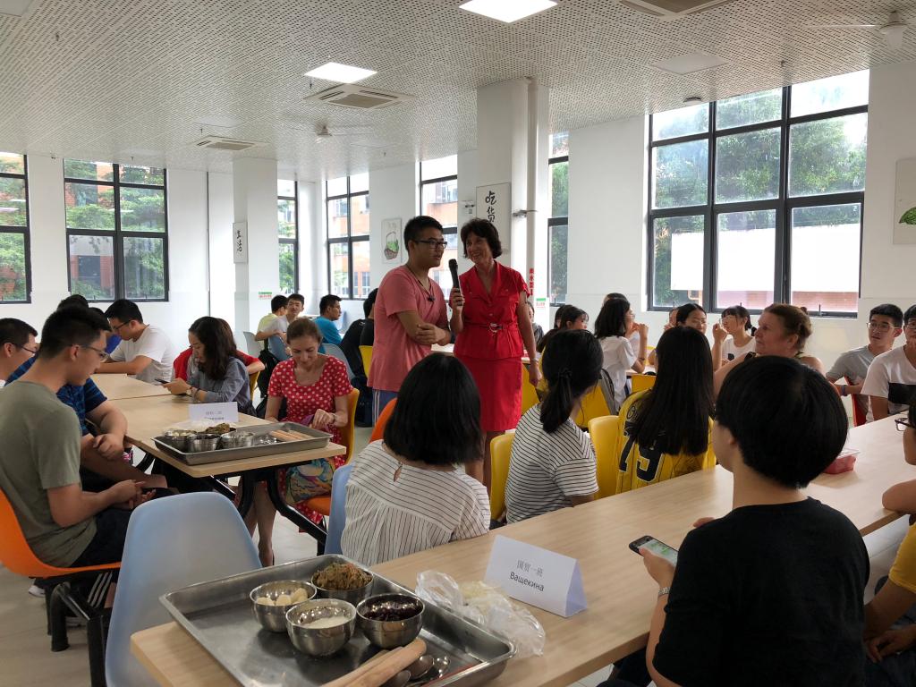 8月18日下午,俄语语言中心再次举办了一场“俄罗斯茶”活动。2018级同学与俄罗斯老师、助教们欢聚学校食堂,一起动手制作俄式甜馅樱桃饺子和传统中式饺子。