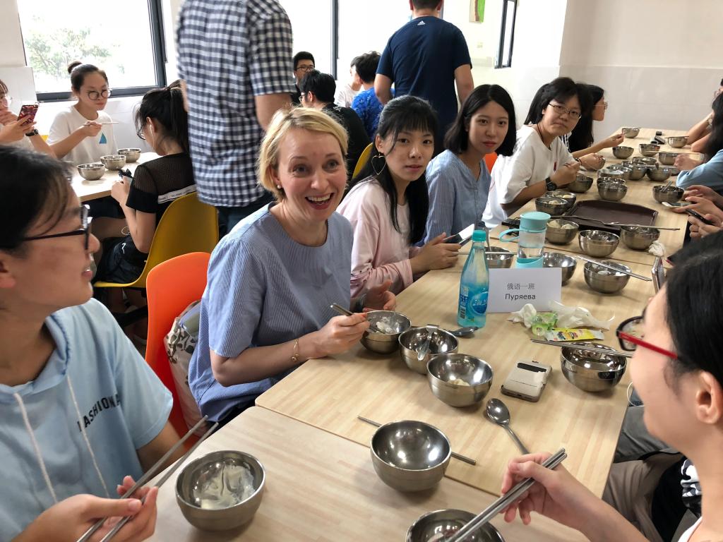 俄语一班同学与老师一起品尝饺子
