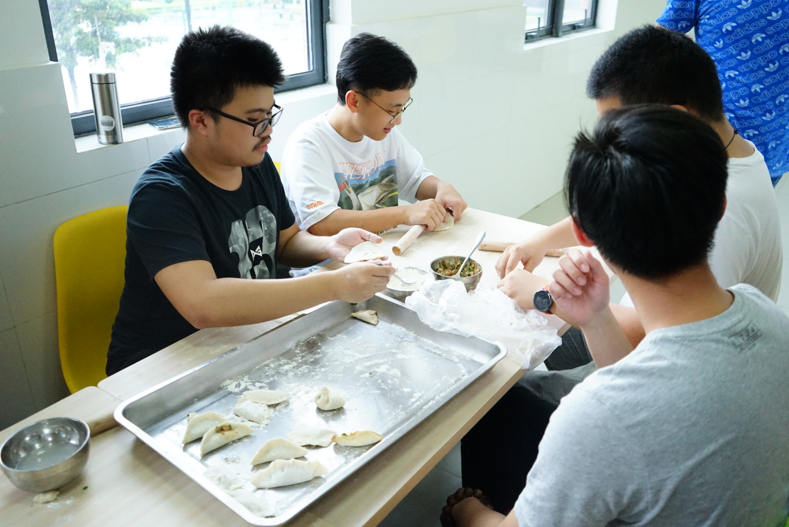 国贸一班同学包饺子