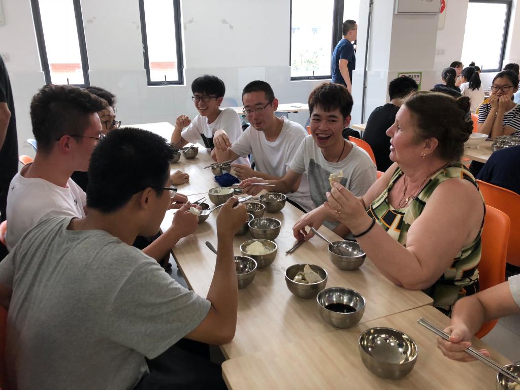 材料二班同学与老师一起品尝饺子