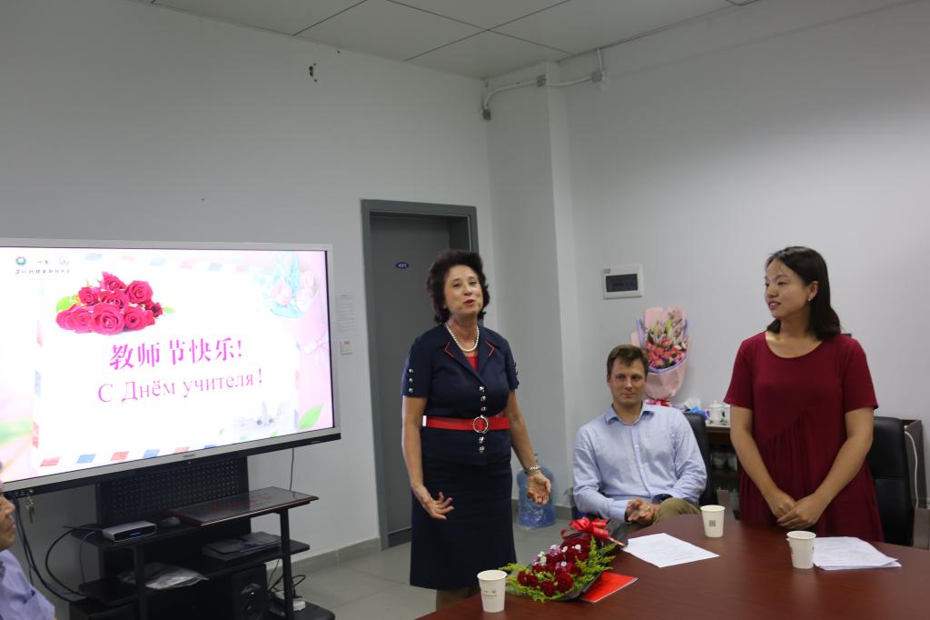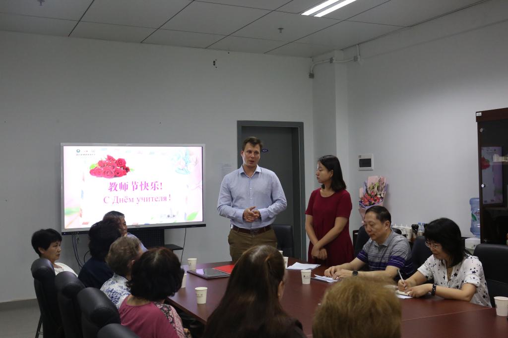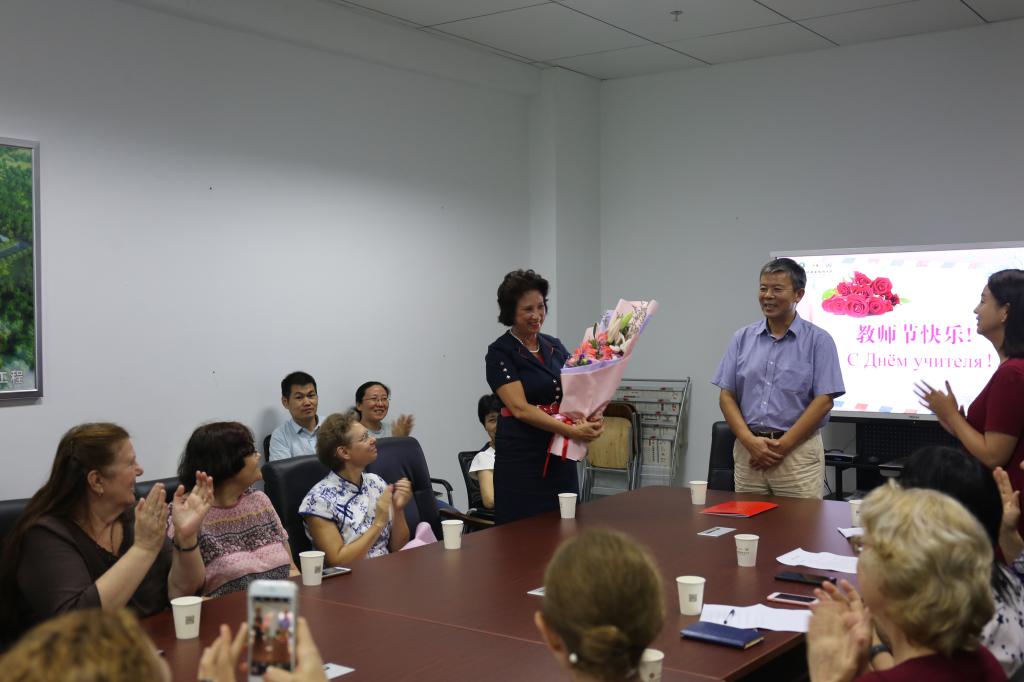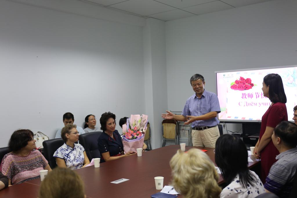 我校教职工共聚一堂,以庆祝中国教师节的形式,表达全校对教师们的感谢和祝福,同时对优秀教师和先进集体进行表彰。赵平校长、塔拉索夫执行第一副校出席今天的活动。