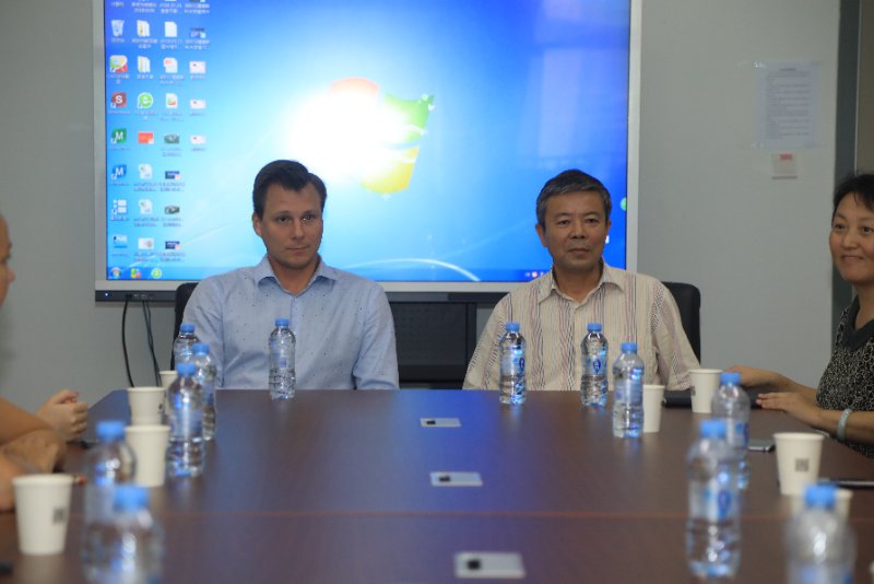 随后,校长赵平、执行第一副校长塔拉索夫、国际事务部部长冀四梅与来访团进行了座谈会,三名2018级硕士研究生也一同参与了此次会议。会上,赵平校长首先对远道而来的俄罗斯友人表示热烈欢迎,详细介绍了学校的育人使命,并希望借此之机让更多的青年创业者了解我校,提供更多的创业机遇。塔拉索夫副校长则着重介绍了我校的发展历程和未来的办学规模,并一一详尽的回答了来访团提出的问题。会上双方表达了对未来共同合作的兴趣和期望。