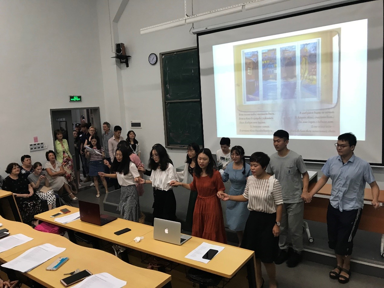 语言文学系系主任克罗特科娃首先为晚会致开幕词,然后在诗朗诵《五月的莫斯科》 中拉开了帷幕。