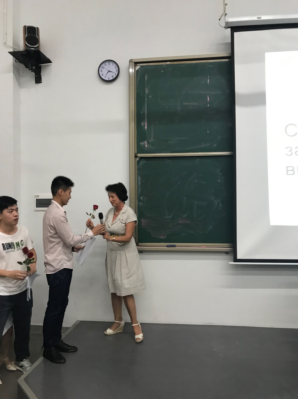 在朗诵会尾声,此次活动的指导老师、特卡琴科副教授发表总结讲话。她高度评价同学们的精彩表演,并勉励同学们继续努力,进一步提升俄语水平。