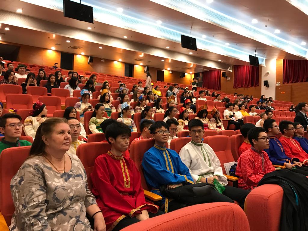 2018年11月3日晚,由俄语语言中心举办的本学年第四期“俄罗斯茶”活动在过渡校区礼堂拉开了帷幕。我校代理校长唐水源、代理第一副校长塔拉索夫、党委书记兼副校长陆万伟、相关部门负责人及全体师生300余人参加了活动。深圳市外专局、龙岗区委宣传部、龙岗区公安局的代表也应邀观看了演出。