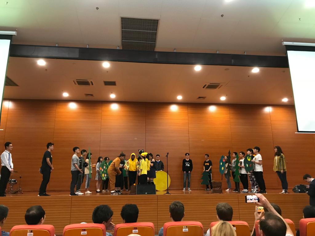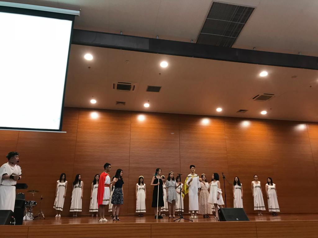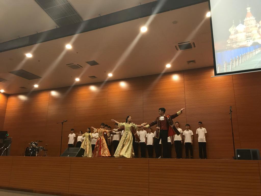 本次活动主要由入学刚刚三个月的2018级本科生用俄语表演节目。首先,诗歌俱乐部的同学们饱含深情地朗诵了普希金等俄罗斯著名诗人的佳作。伴随着优美的华尔兹音乐,三组身着俄罗斯宫廷服饰的同学翩翩起舞,仿佛把人们带回到了19世纪的俄罗斯。接下来,身着俄罗斯传统服饰的民俗社团和“俄罗斯之声”社团的小歌手们分别为大家演唱了著名的俄罗斯歌曲《纤弱的花楸树》和《白桦林》,歌声宛转,悠扬动听。随后表演的是欢乐的舞台剧《橙子》。该剧本源自俄罗斯深受儿童喜爱的同名动画片,是一个关于友谊的故事。同学们惟妙惟肖地扮演了刺猬、黄雀、狼等各种小动物,熟练而又生动地用俄语完成了整个剧目,不时赢得阵阵掌声。最后,2017级俄语专业的同学们表演了改编自希腊神话的舞台剧《帕里斯的裁决》。他们纯熟的俄语旁白和对话,精彩的角色演绎,给大家留下了深刻的印象。