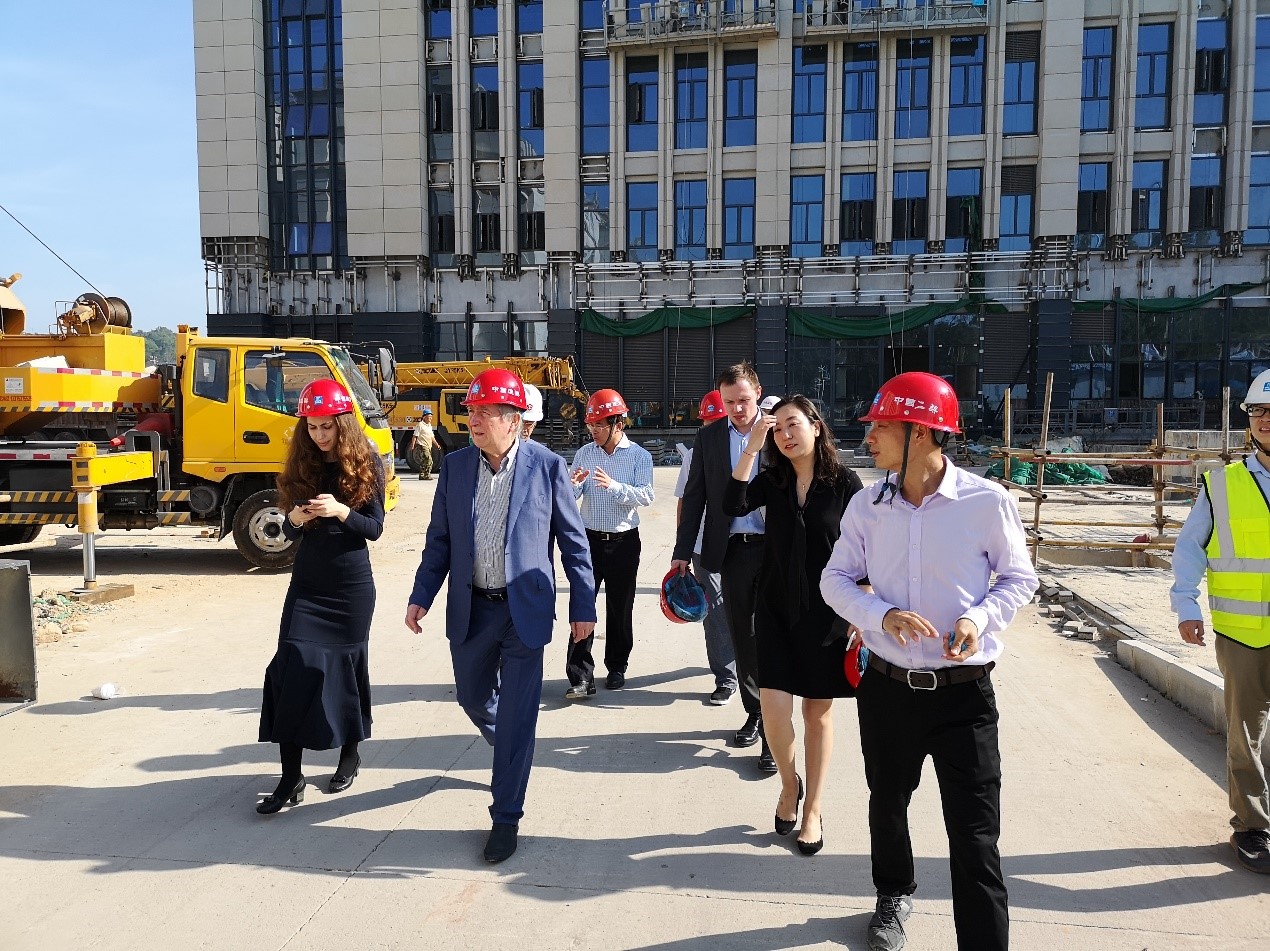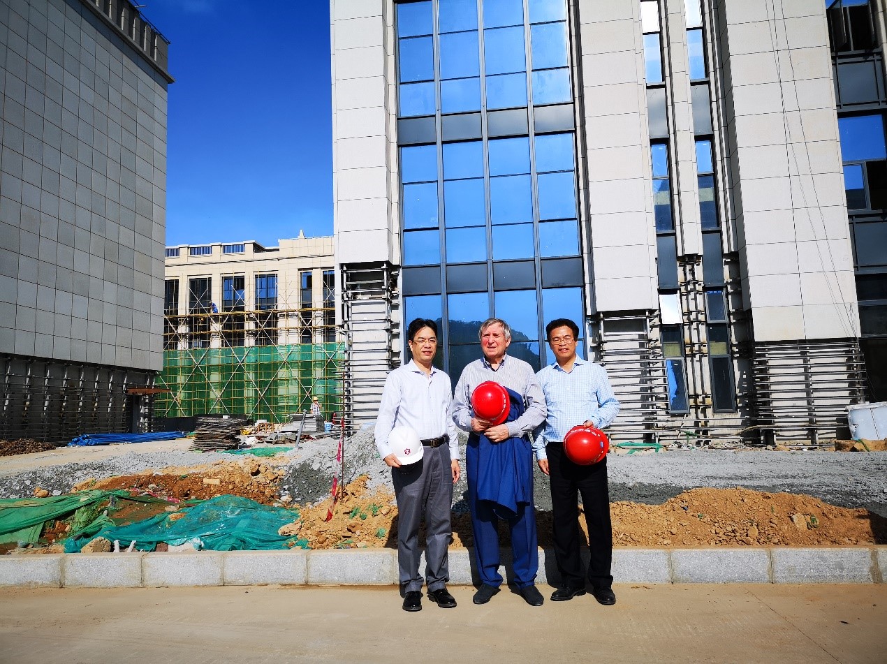 11月21日上午,索恩采夫院士一行来到我校永久校区参观,我校代理校长唐水源教授,党委书记、副校长陆万伟向索恩采夫院士介绍了学校永久校区发展规划和建设进展情况,并实地参观了学校主楼、实验楼。唐水源代理校长和陆万伟书记表示希望索恩采夫院士尽快率领莫斯科大学材料科学系专家团队来我校开展科研工作,我校将为专家们提供最好的科研、生活条件。